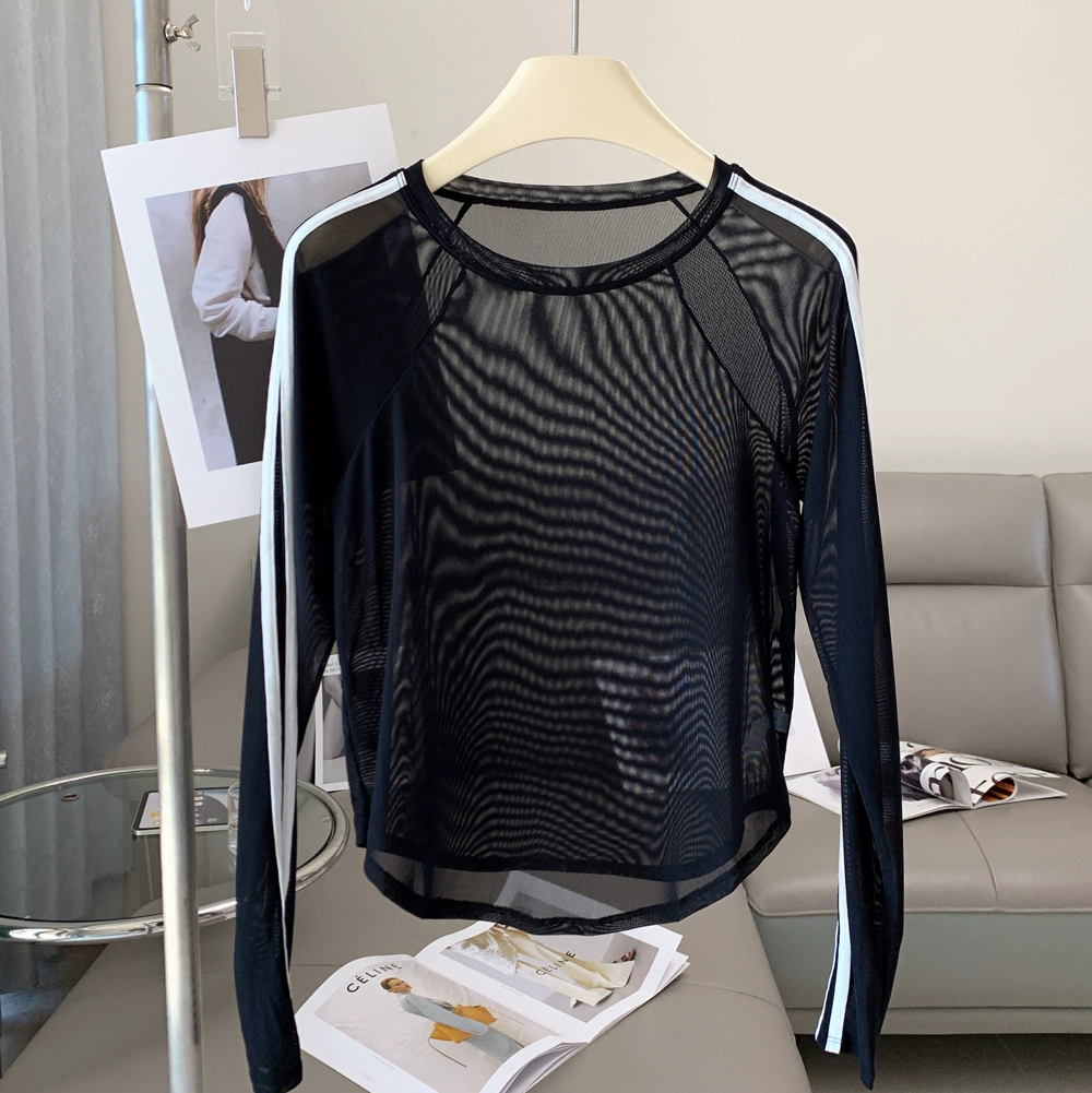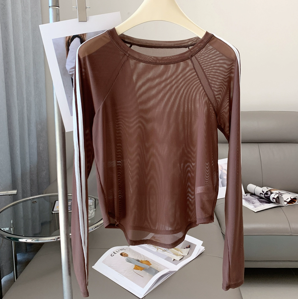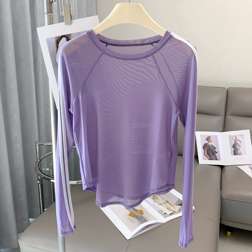 | nameOriginal | lulu women's color block mesh slim fit blouse long sleeve T-shirt |