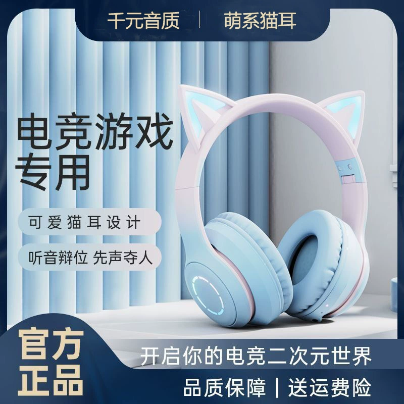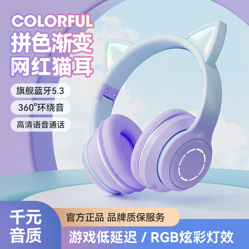Luminous Bluetooth headset head-mounted gradient cat ears high-looking online class call game headset gift universal