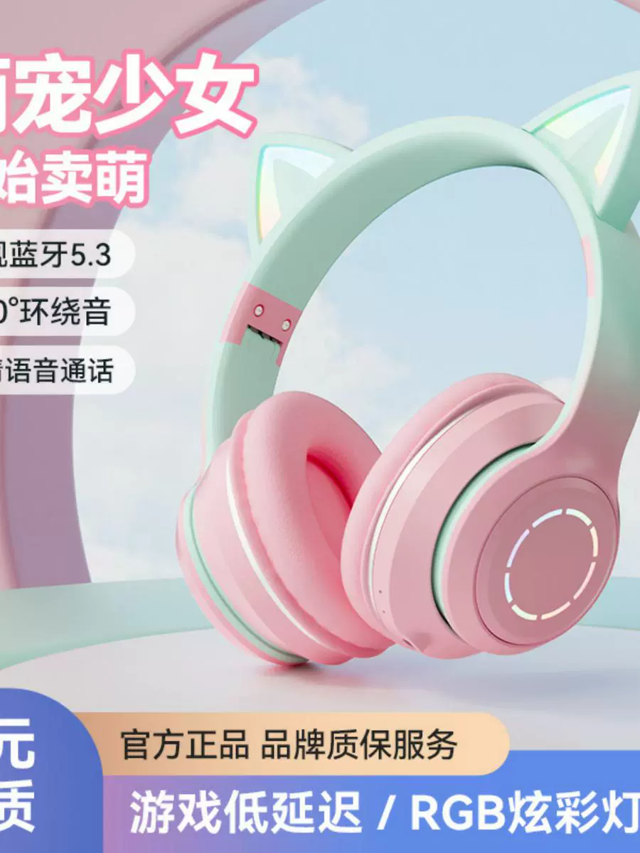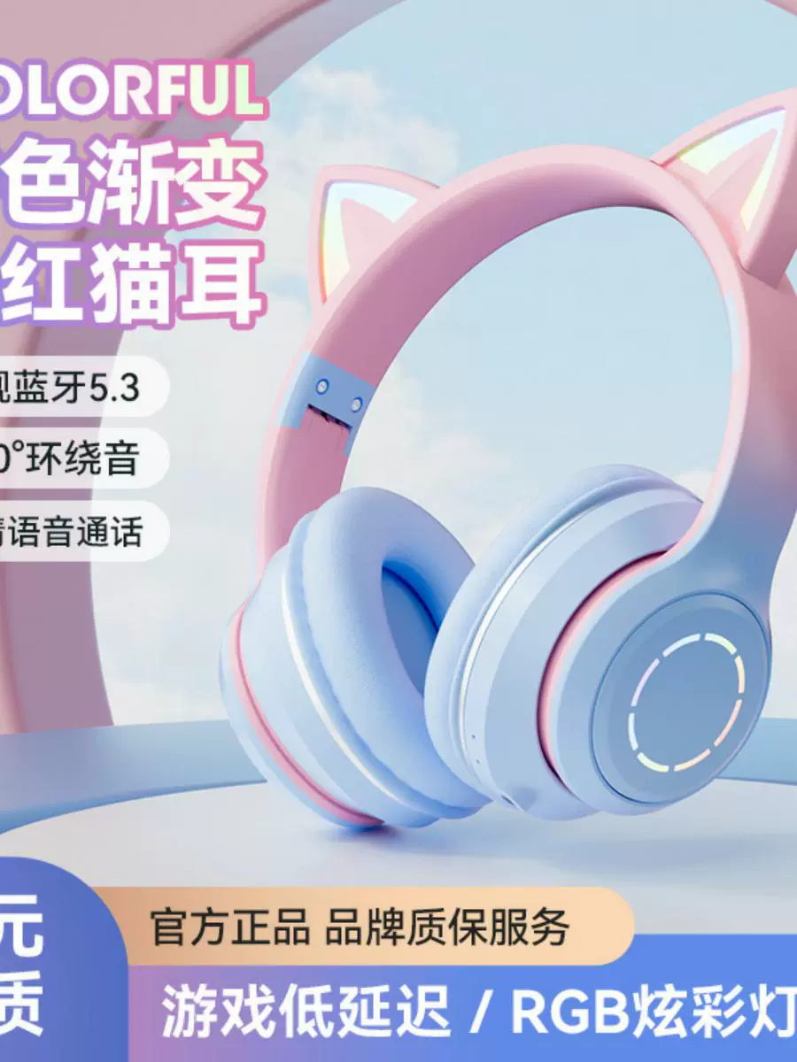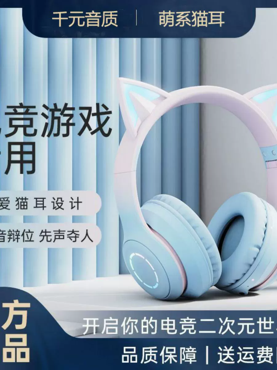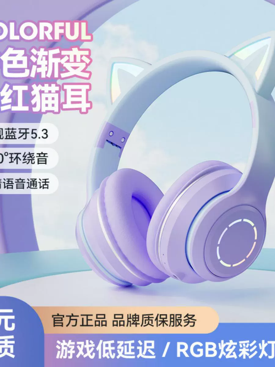 | nameOriginal | Luminous Bluetooth headset head-mounted gradient cat ears high-looking online class call game headset gift |