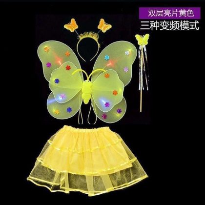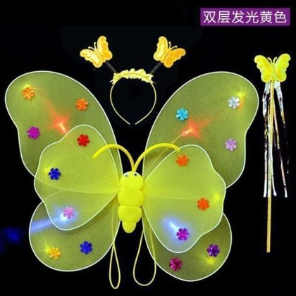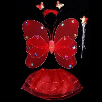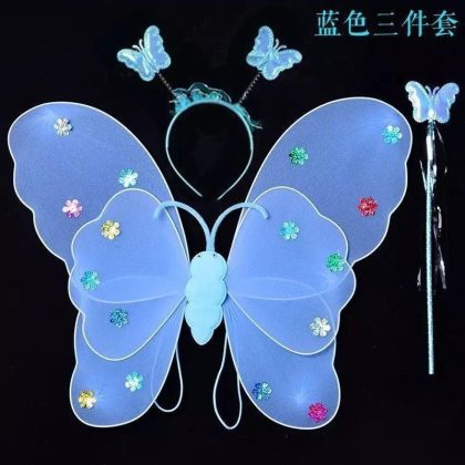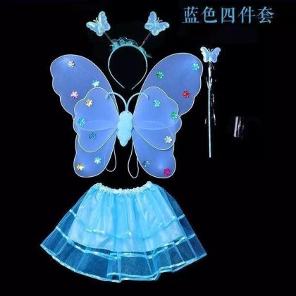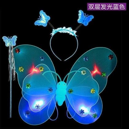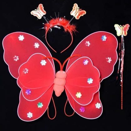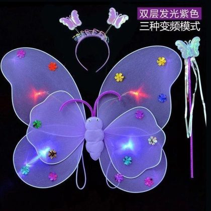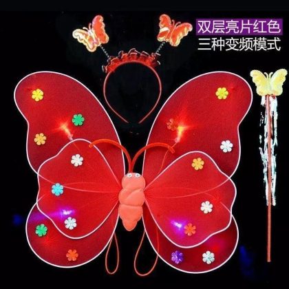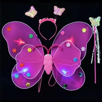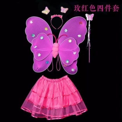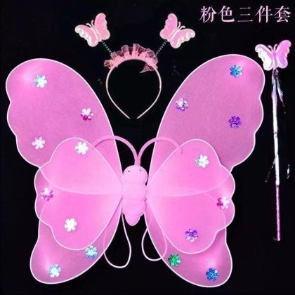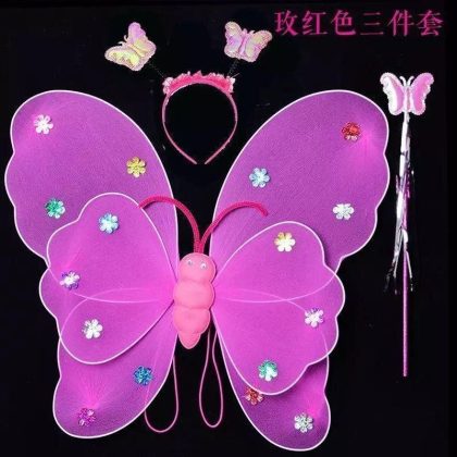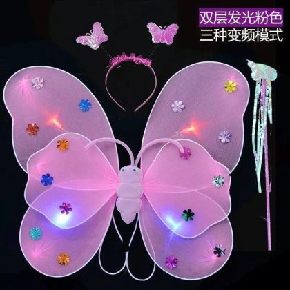 Luminous Butterfly Wings Little Girl’s Back Decoration Children’s Wonderful Fairy Magic Wand Flower Fairy Three-piece Pink Dress