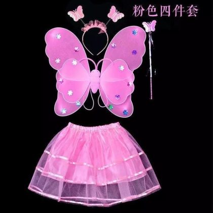 Luminous Butterfly Wings Little Girl's Back Decoration Children's Wonderful Fairy Magic Wand Flower Fairy Three-piece Pink Dress
