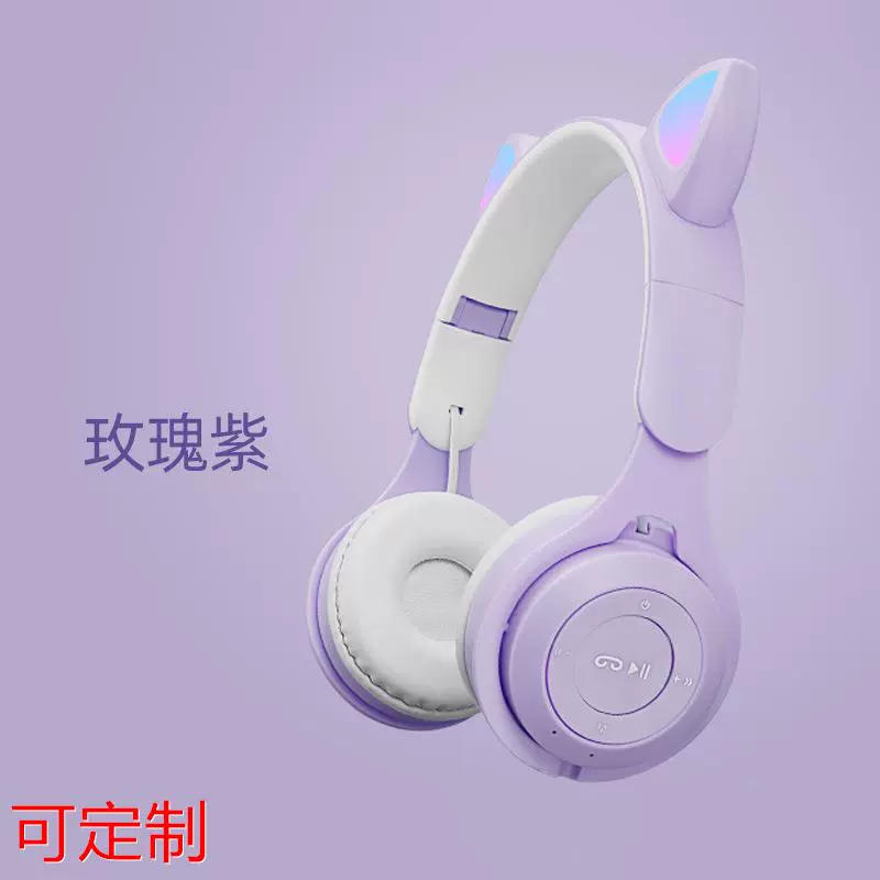 Luminous cat ear head-mounted Bluetooth headset new binaural gaming headset bass macaron wireless bluetooth headset