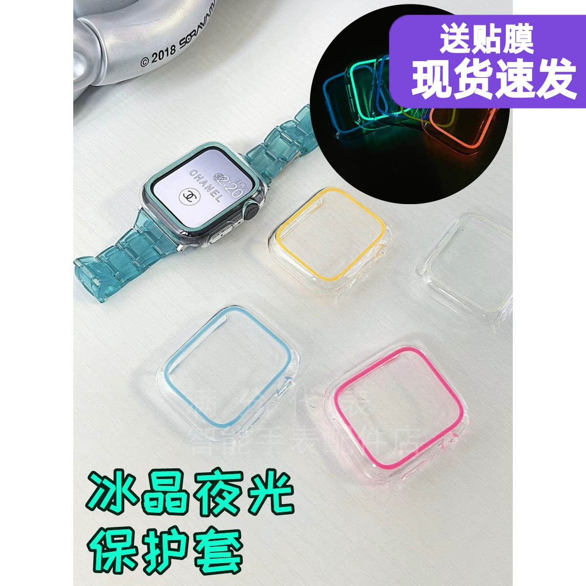 Luminous fluorescent transparent iwatch9 watch case suitable for AppleWatch876se Apple 10 watch protective case