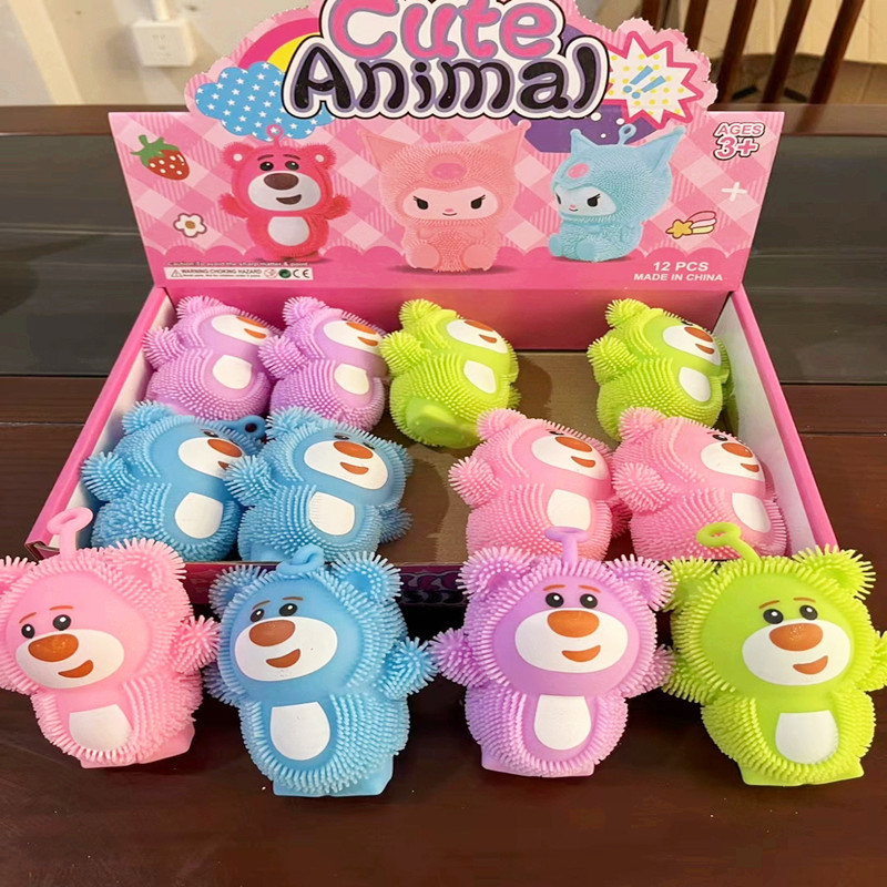 Luminous fur ball vent cartoon cute bear vent pinch music children stall toy factory in stock wholesale