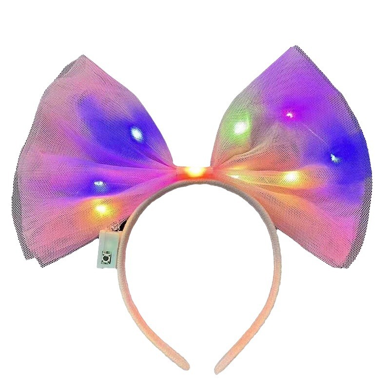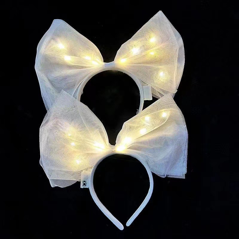 | nameOriginal | Luminous oversized bow headband female French style personality Internet celebrity fabric mesh exaggerated photo photo flash headband |