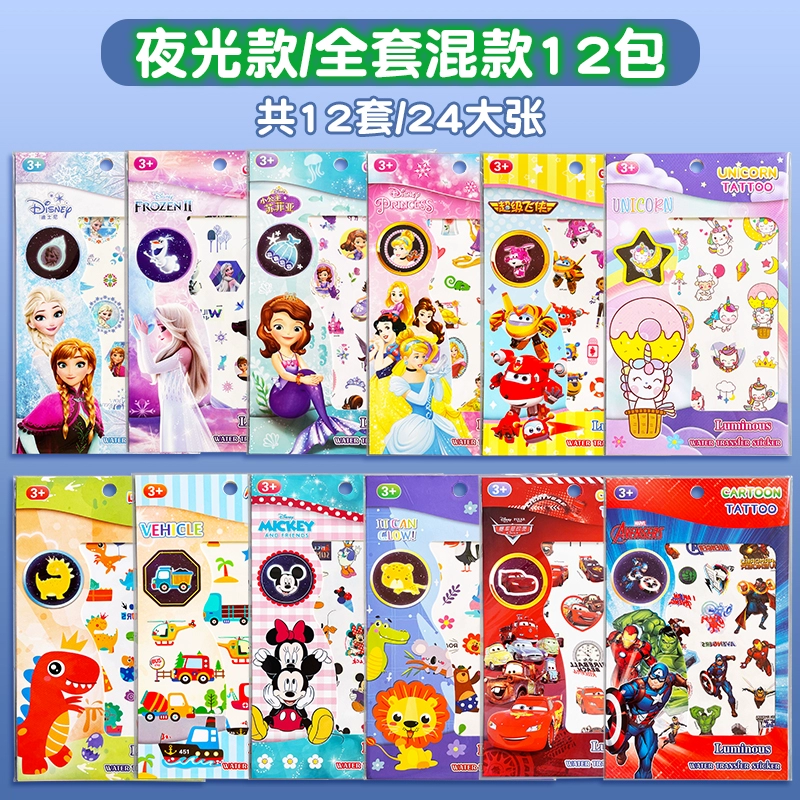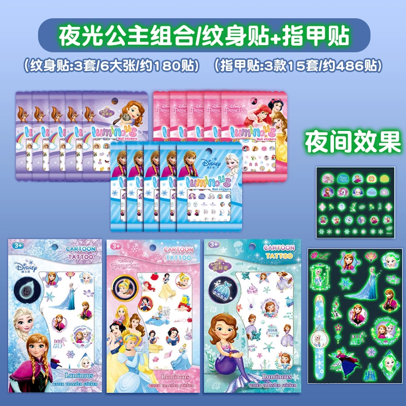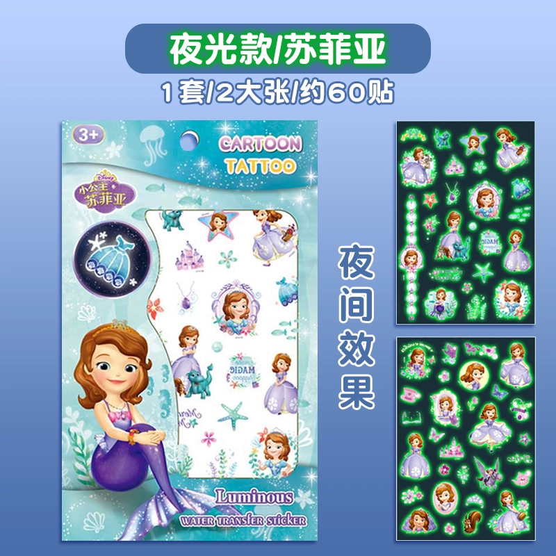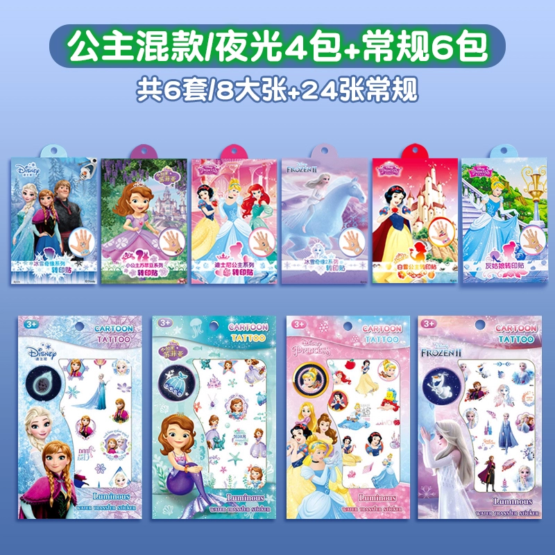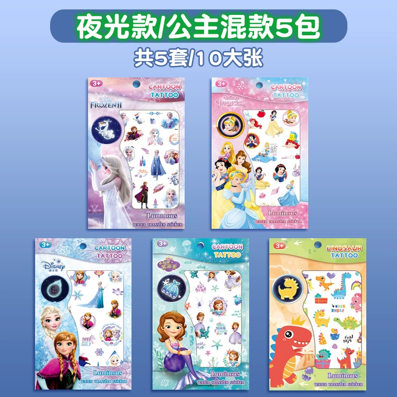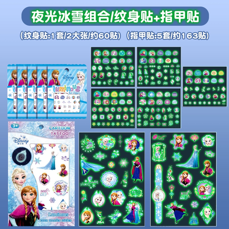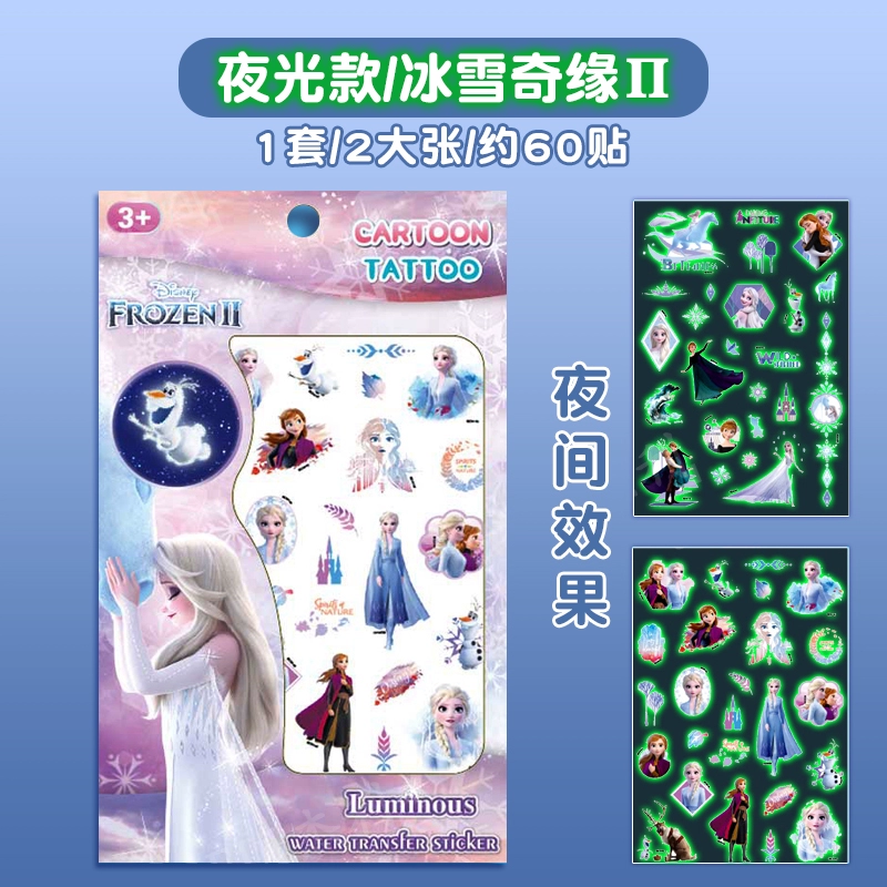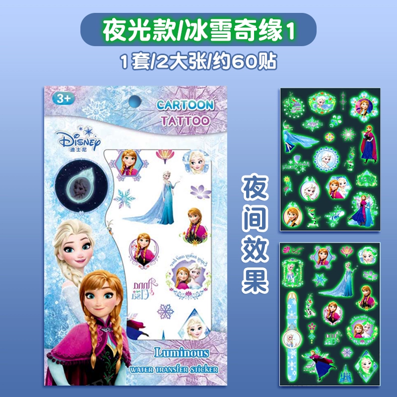 Luminous Tattoo Stickers Frozen Elsa Princess Transfer Stickers Cartoon Children's Stickers Boys and Girls Watermark Printing Water Stickers Cute Washable Transparent Stickers Decorative Pattern Small Gifts