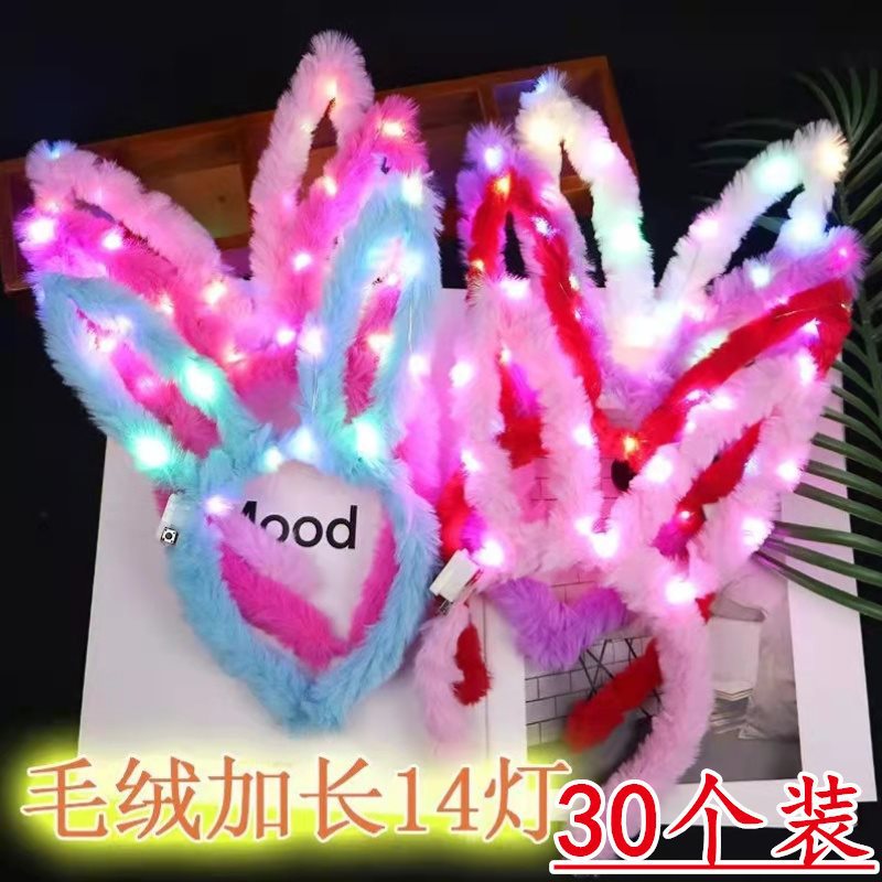 Luminous toys new night market stall luminous net red toys flash feathers rabbit ears children's headband wholesale.