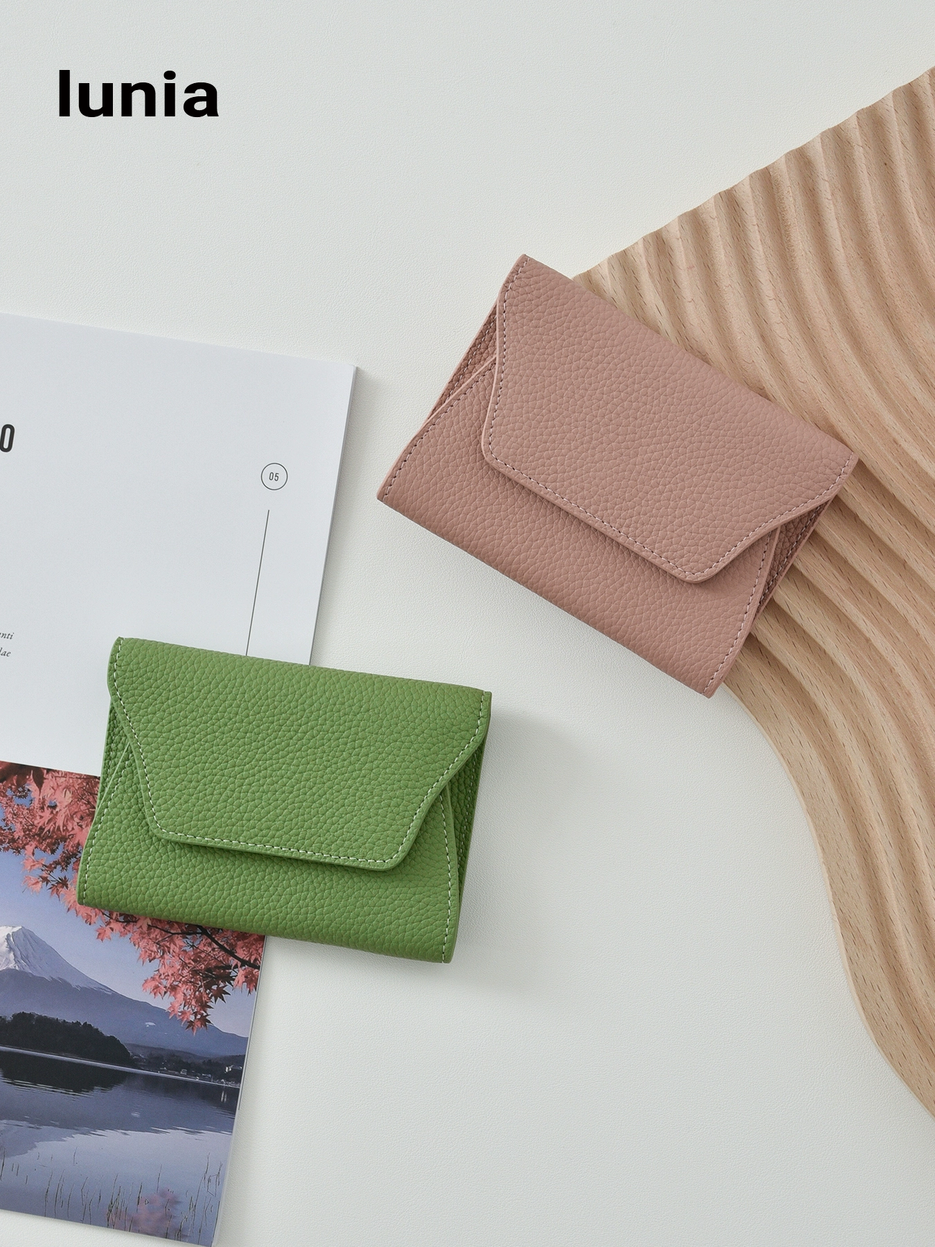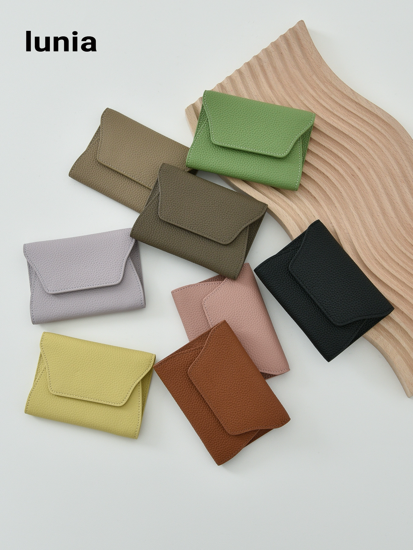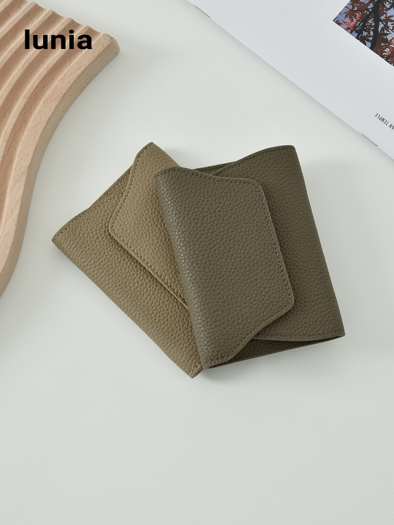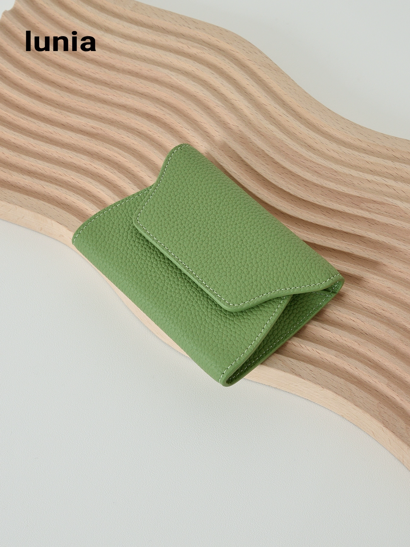 lunia China Togo first layer cowhide short wallet genuine leather coin purse avocado green driver’s license wallet ins
