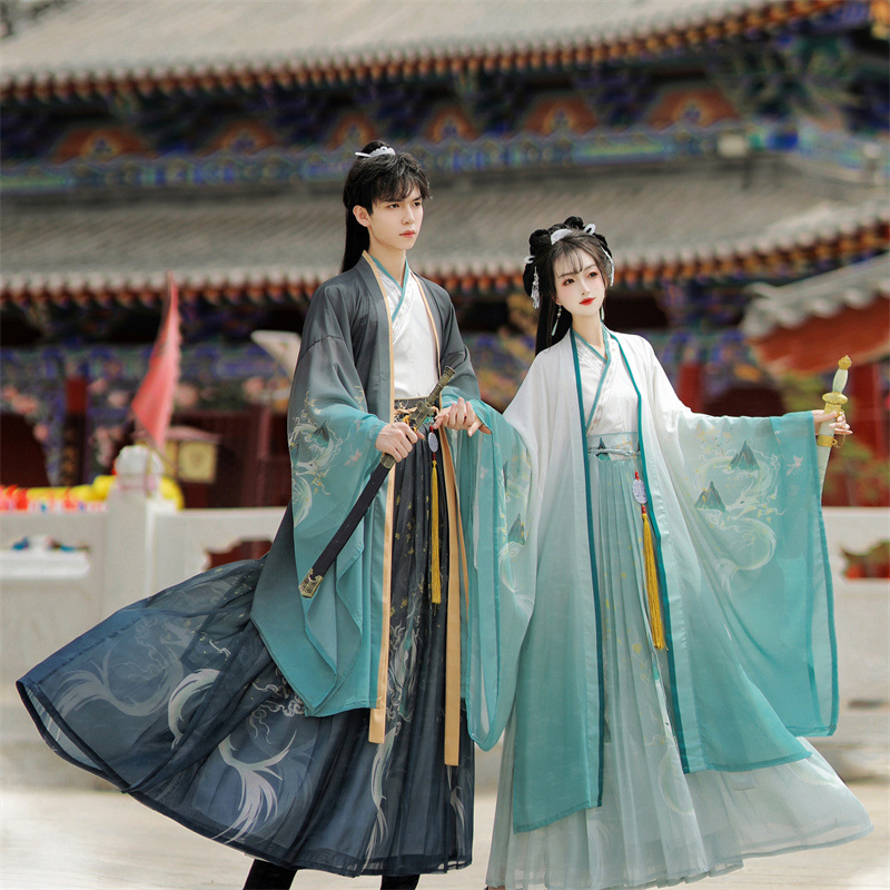 Luo Zhu Original (Haishan League) Wei Jin Couple Hanfu Men’s and Women’s 2024 New Summer Qi Waist Collar Ancient Suit
