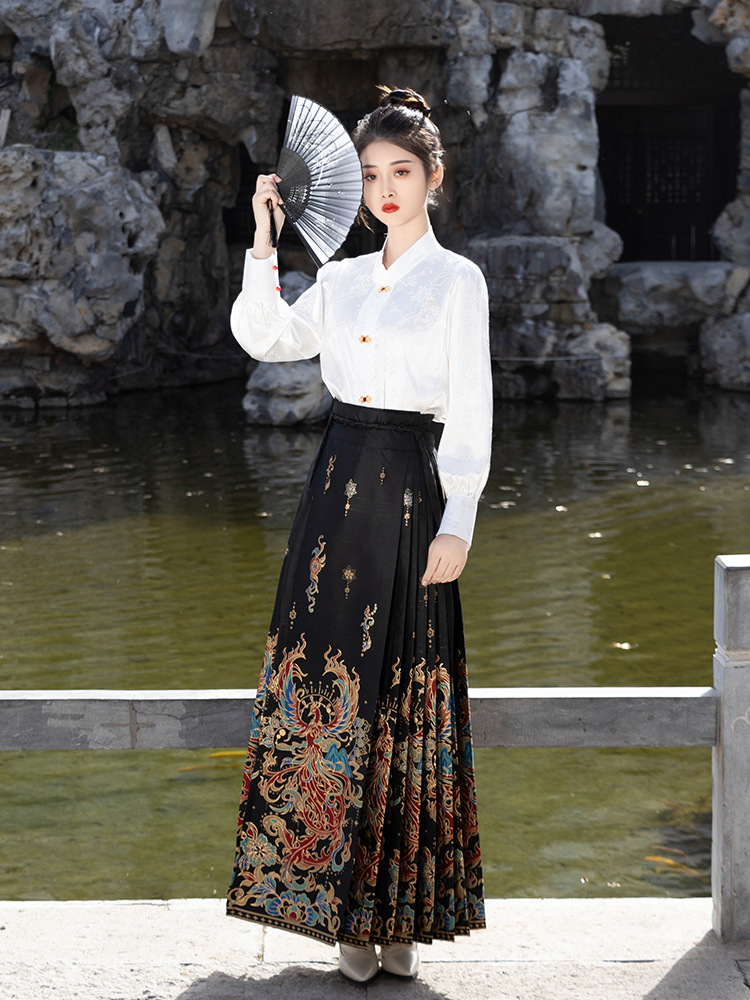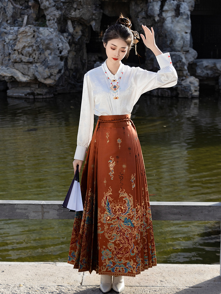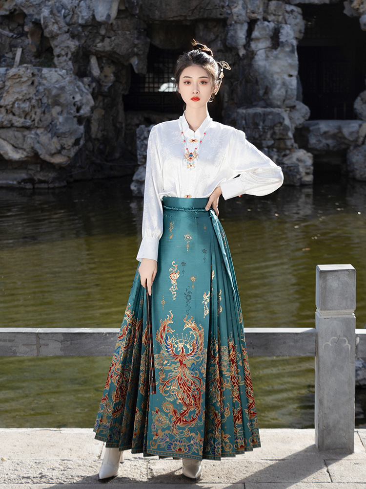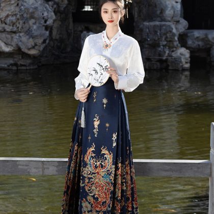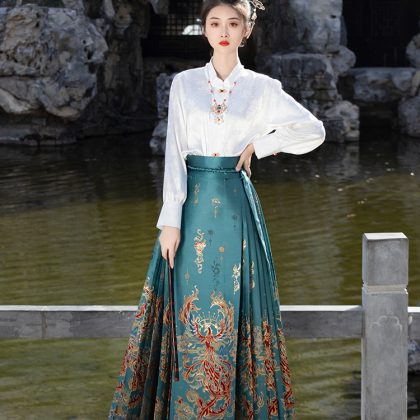 | nameOriginal | Luo Zhuyuan Chuangming Hanfu [Phoenix Bath Fire] Weaving Gold Makeup Flower Horse Face Skirt Engagement Spring and Summer Daily commuter |
