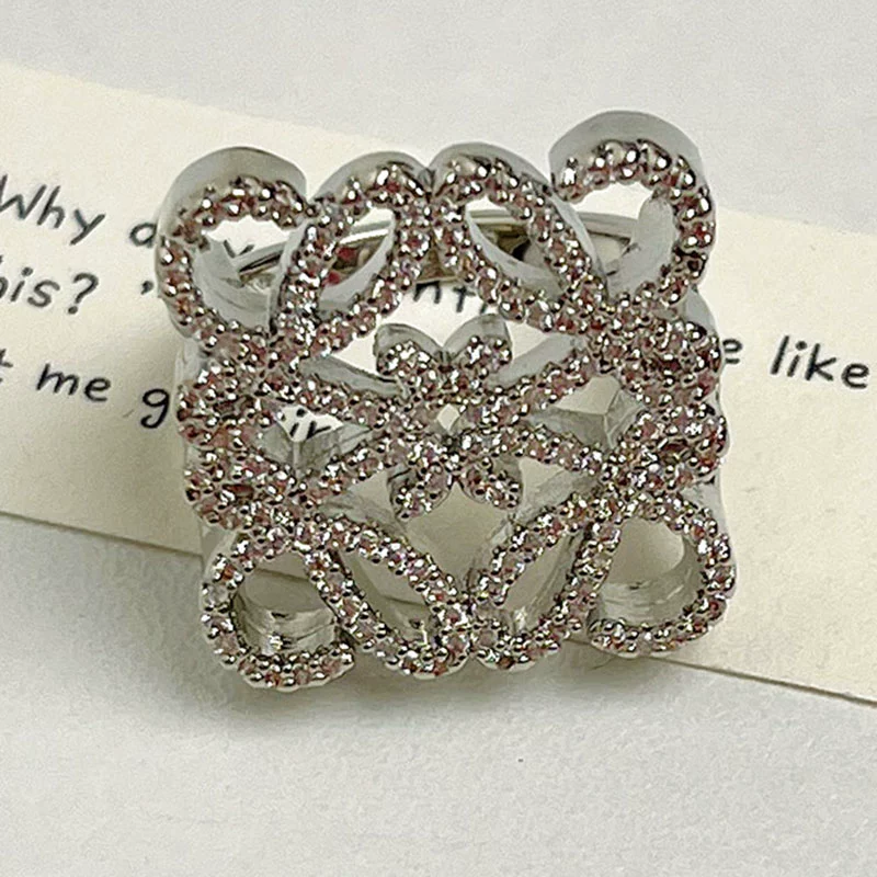 Luojia niche design moon cake hollow square inlaid diamond ring female light luxury high -level heavyweight personality unique ring
