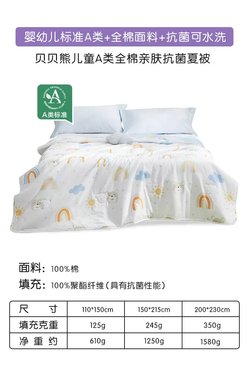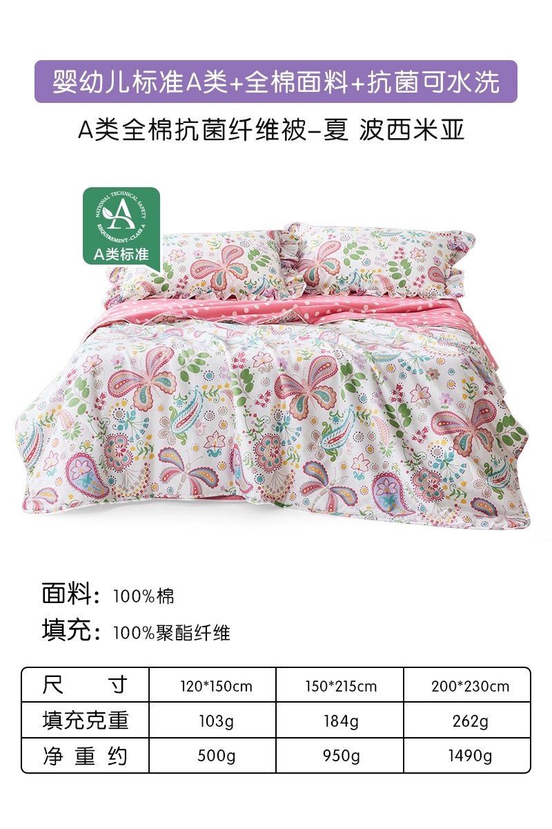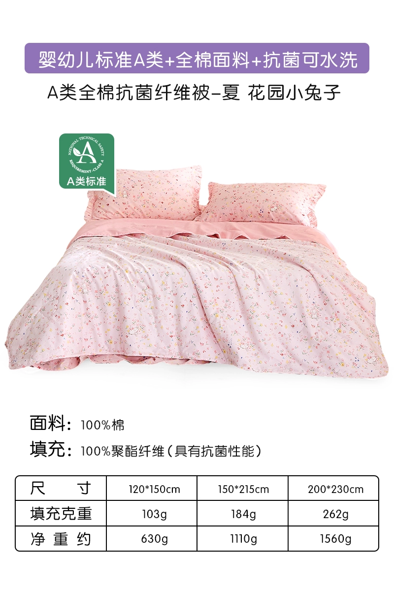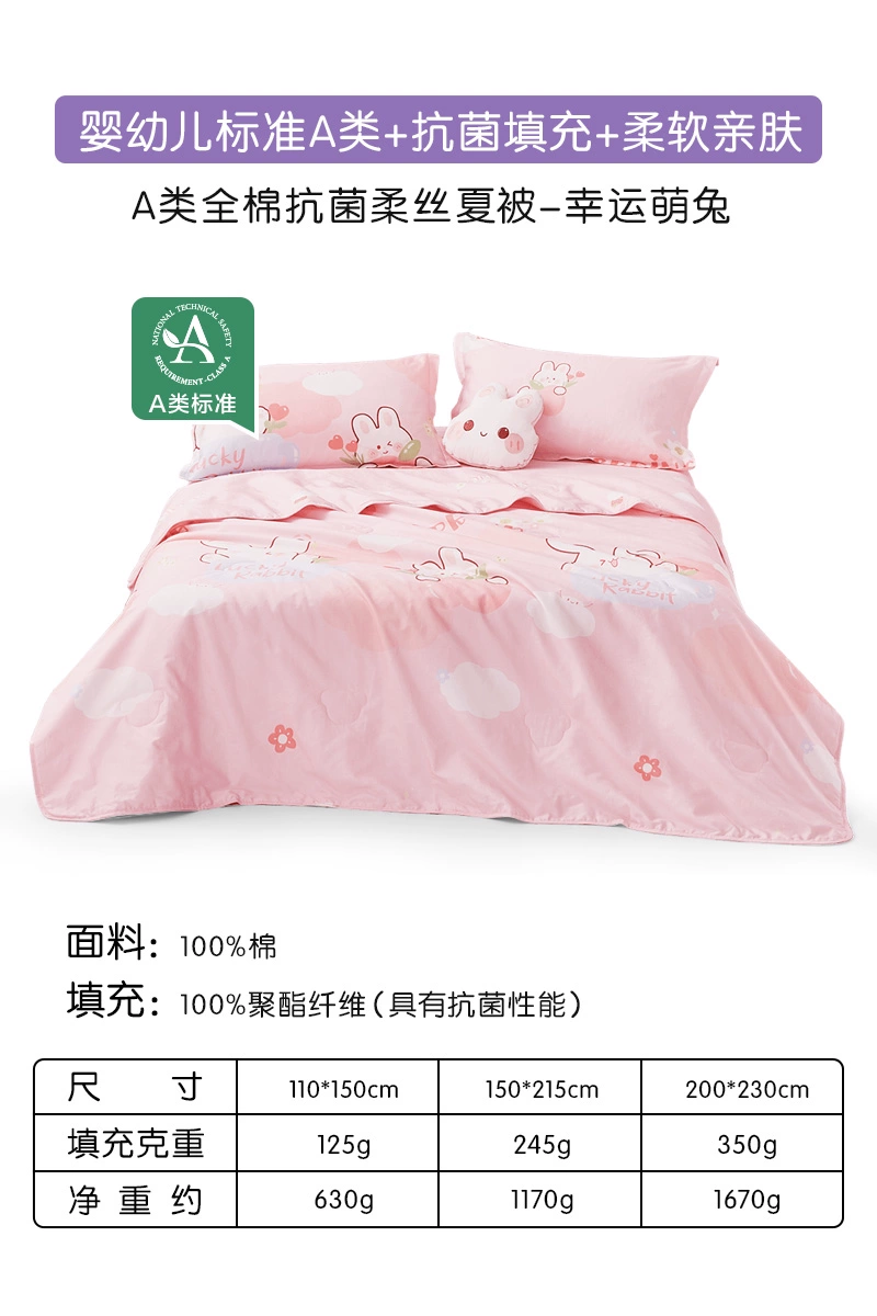 Luolai Home Textiles Summer Cooling Quilt Pure Cotton Antibacterial Air Conditioning Quilt Machine Washable Summer Single Children's Quilt Thin