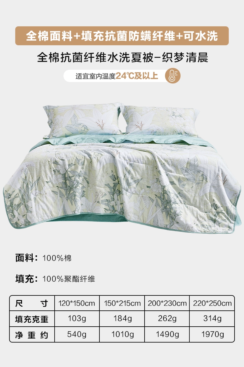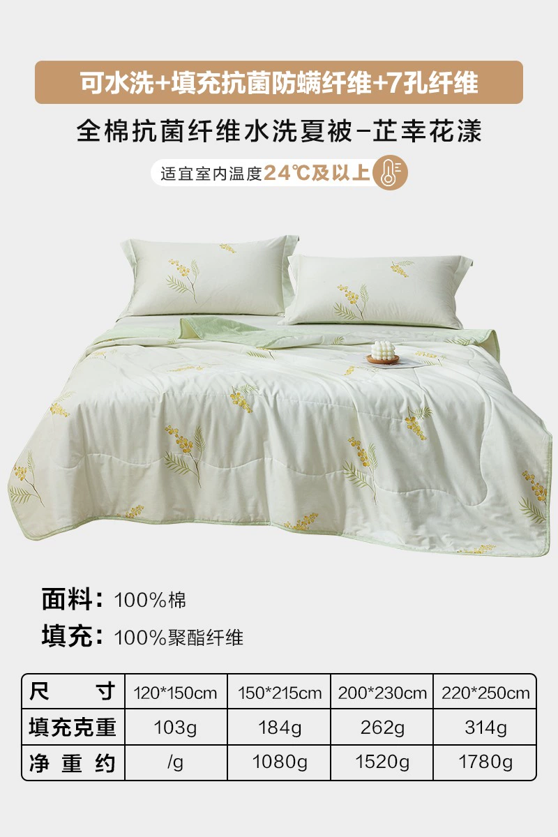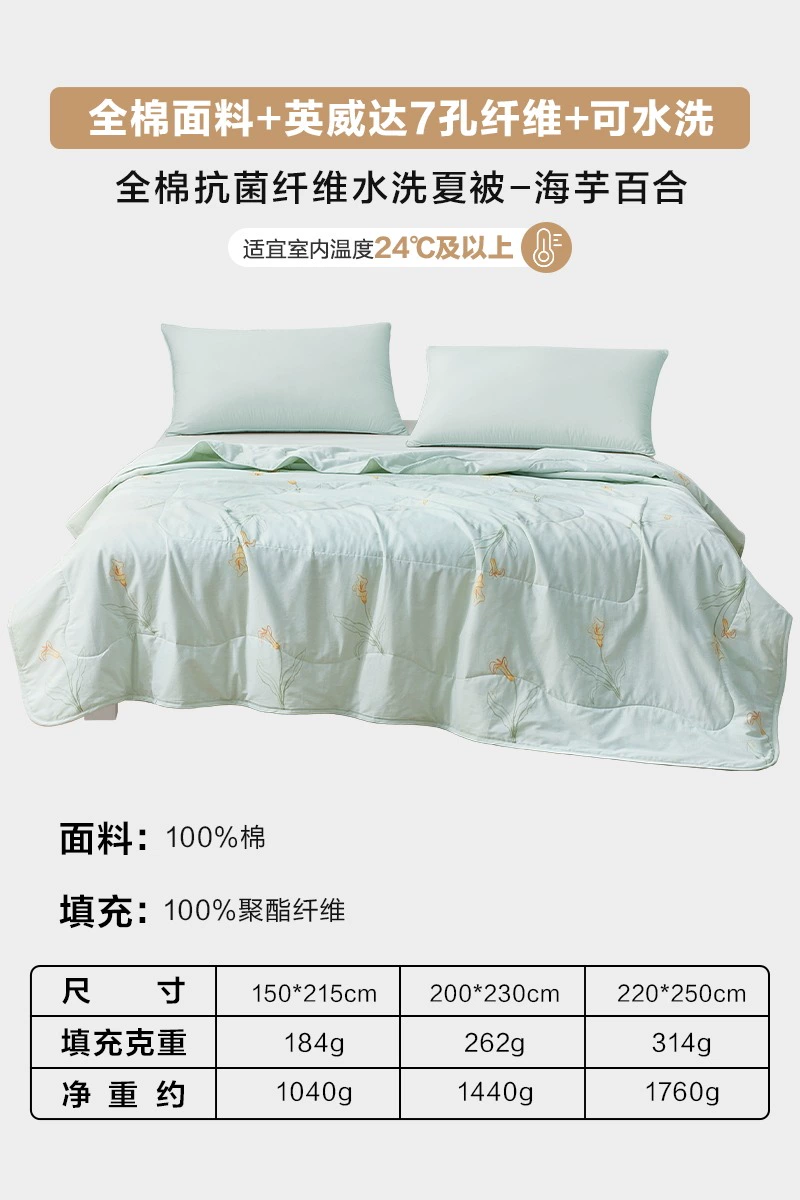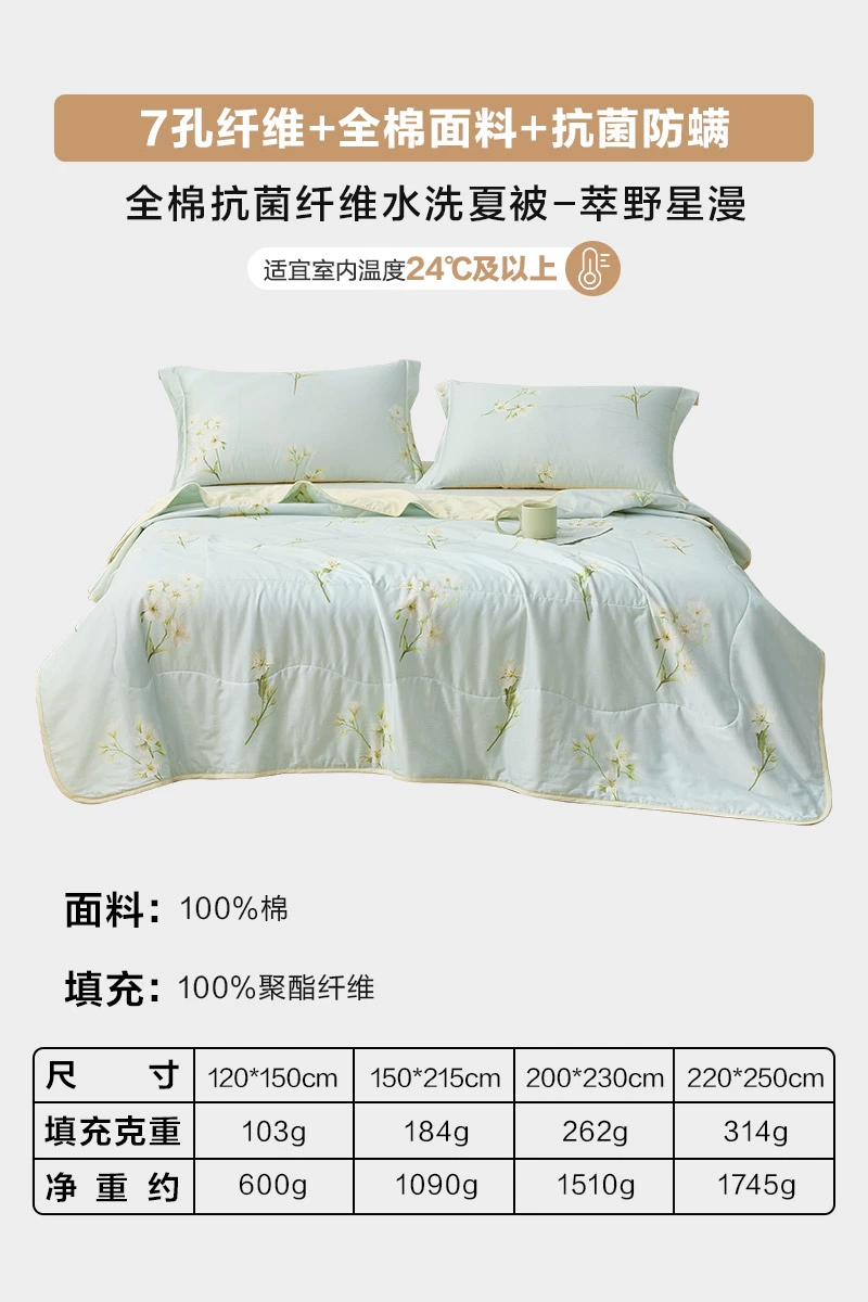 Luolai Home Textiles Summer Cooling Quilt Pure Cotton Antibacterial Air Conditioning Quilt Machine Washable Summer Single Children’s Quilt Thin