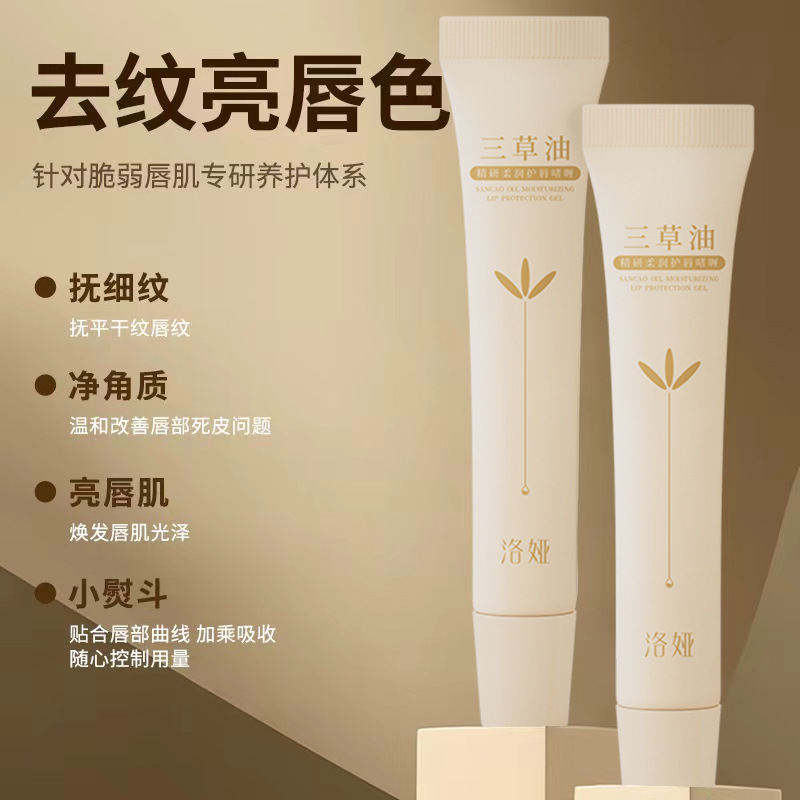 | nameOriginal | Luoya three grass oil refined soft lip care gel fade lip lines anti-dry moisturizing lip balm wholesale |