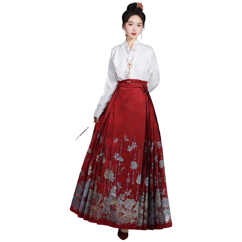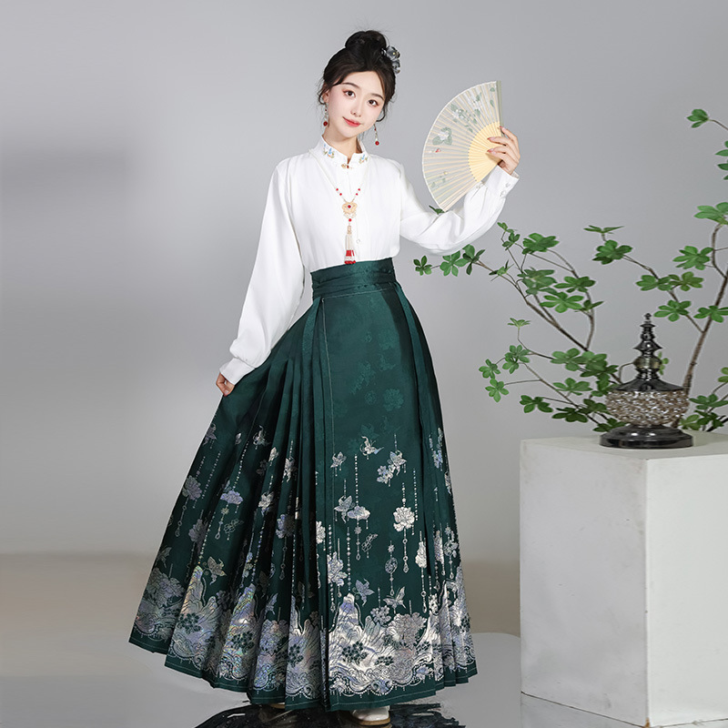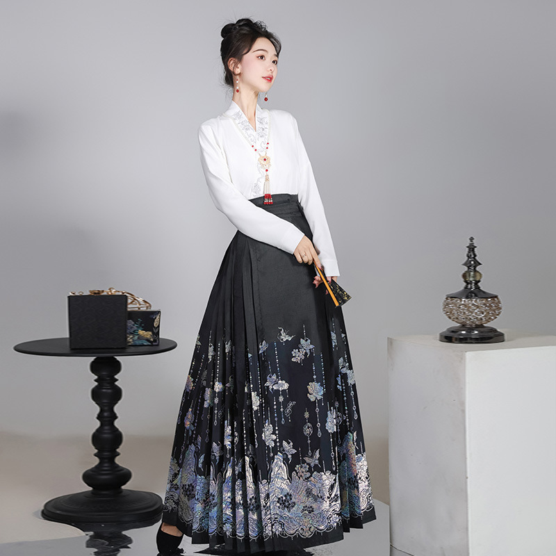 Luozhu Hanfu [Step by Step Flowers] Original Mother of Diane New Chinese Horse-faced Skirt suit Aircraft Sleeve Daily Commute Ming