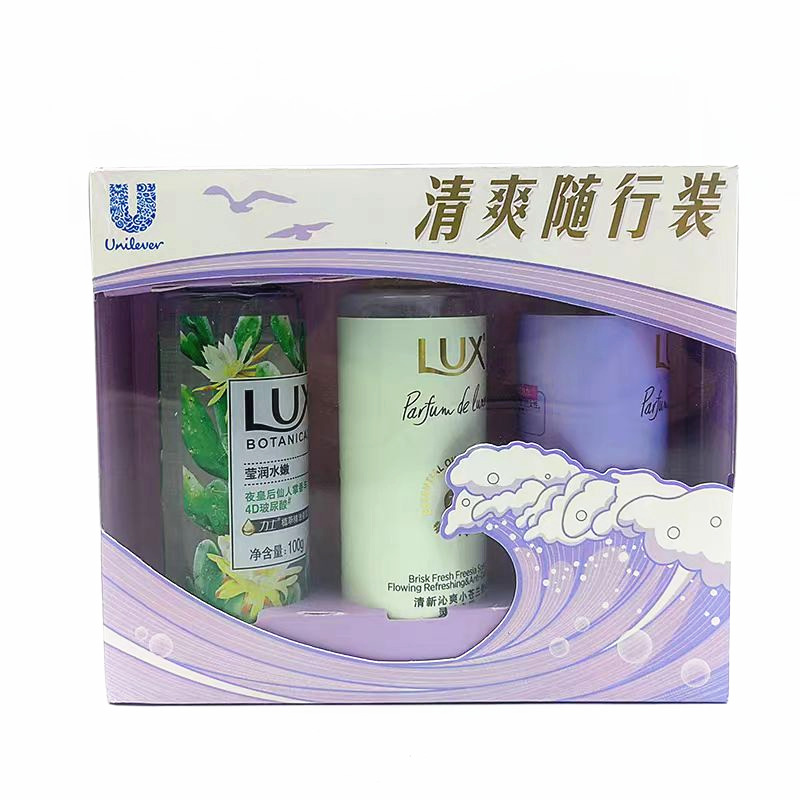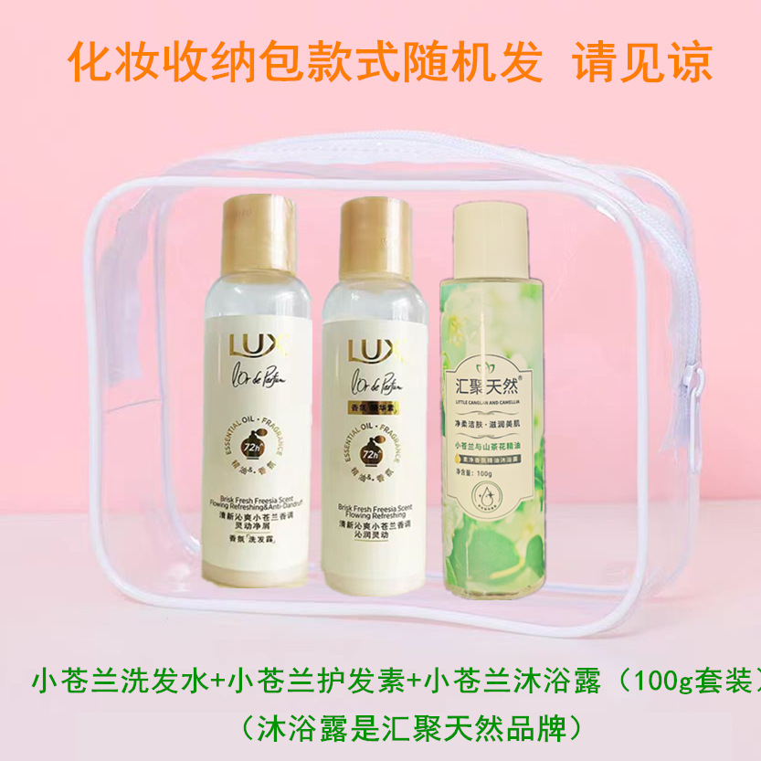 | nameOriginal | Lux Travel suit Freesia Shampoo Conditioner Body Soap 100g Wash Bag Gift Box 50ml |