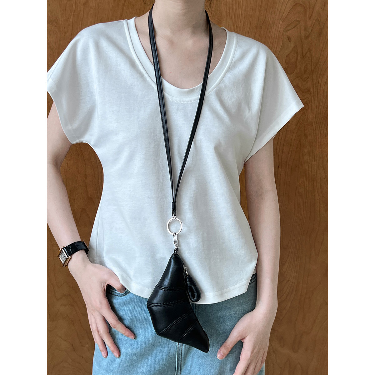| nameOriginal | Luxi U-collar Shoulder Short-sleeved T-shirt Women's Summer Short Solid Color Slimming Feifei Sleeve Top Thin Base Shirt 2550 |