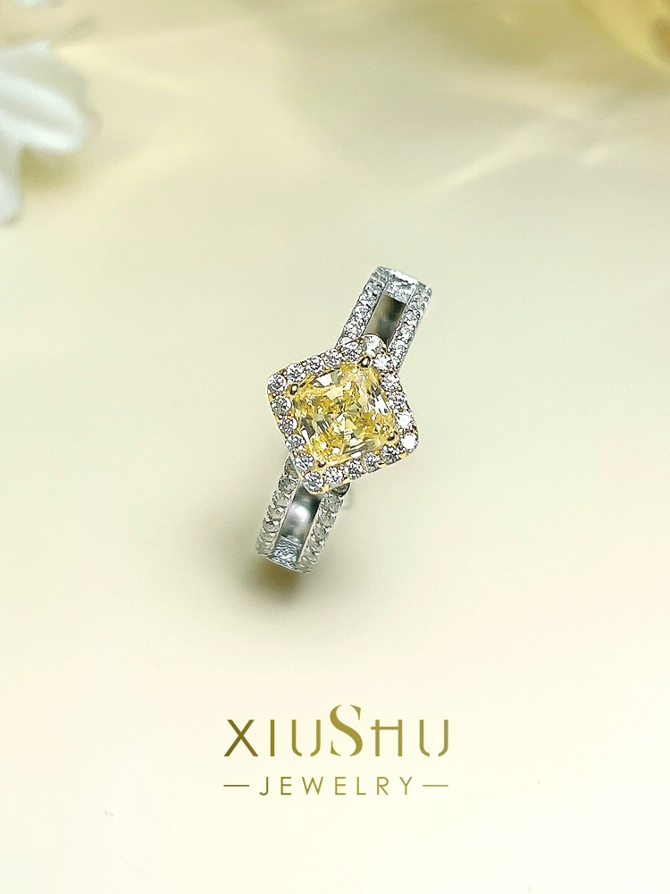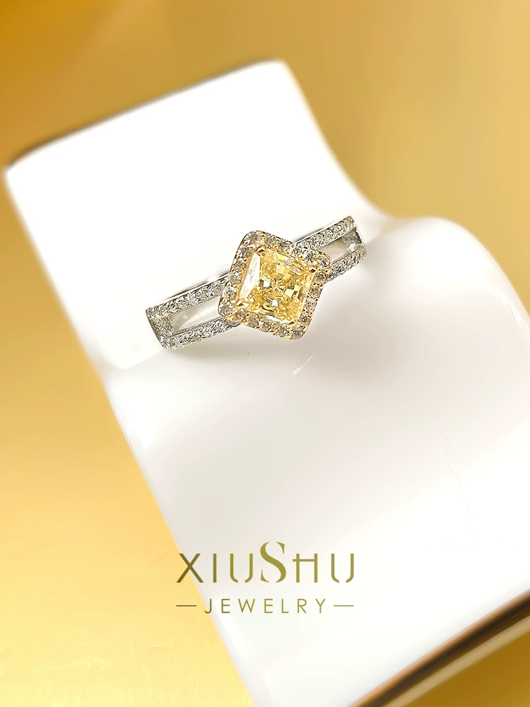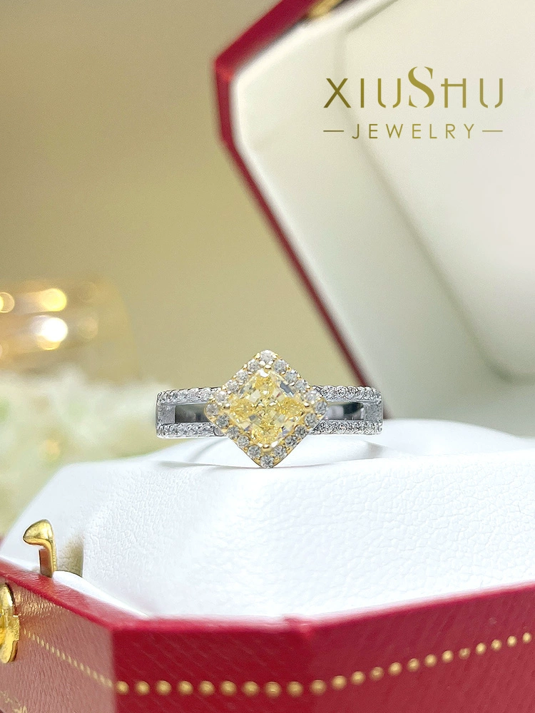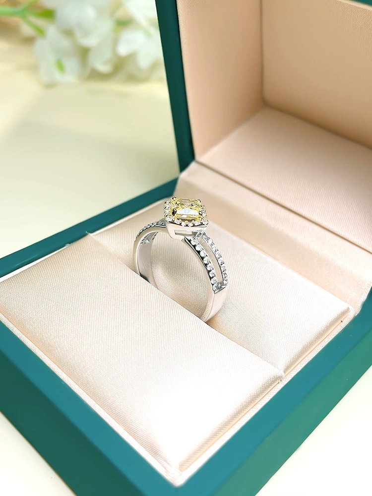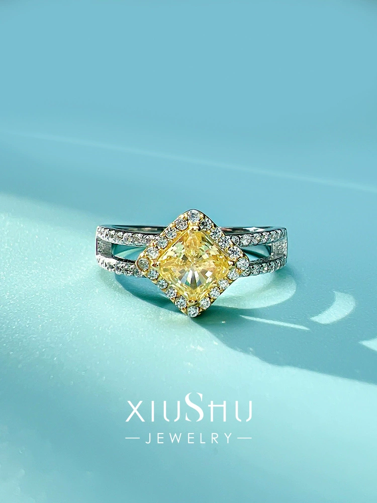 | nameOriginal | Luxurious and sweet new sterling silver yellow diamond princess ring inlaid with imported high-carbon diamonds, stylish and niche design |
