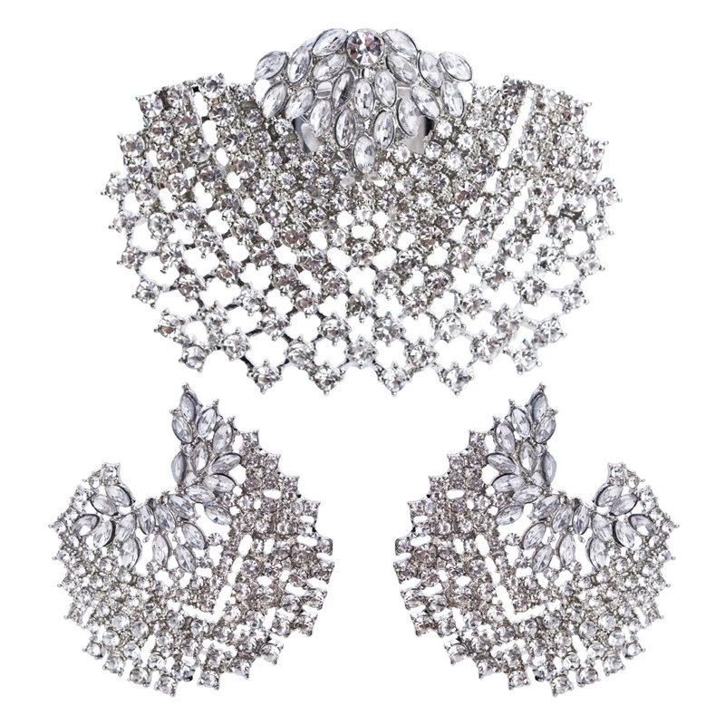 | nameOriginal | Luxurious gold and silver full diamond geometric earrings women's jewelry set |