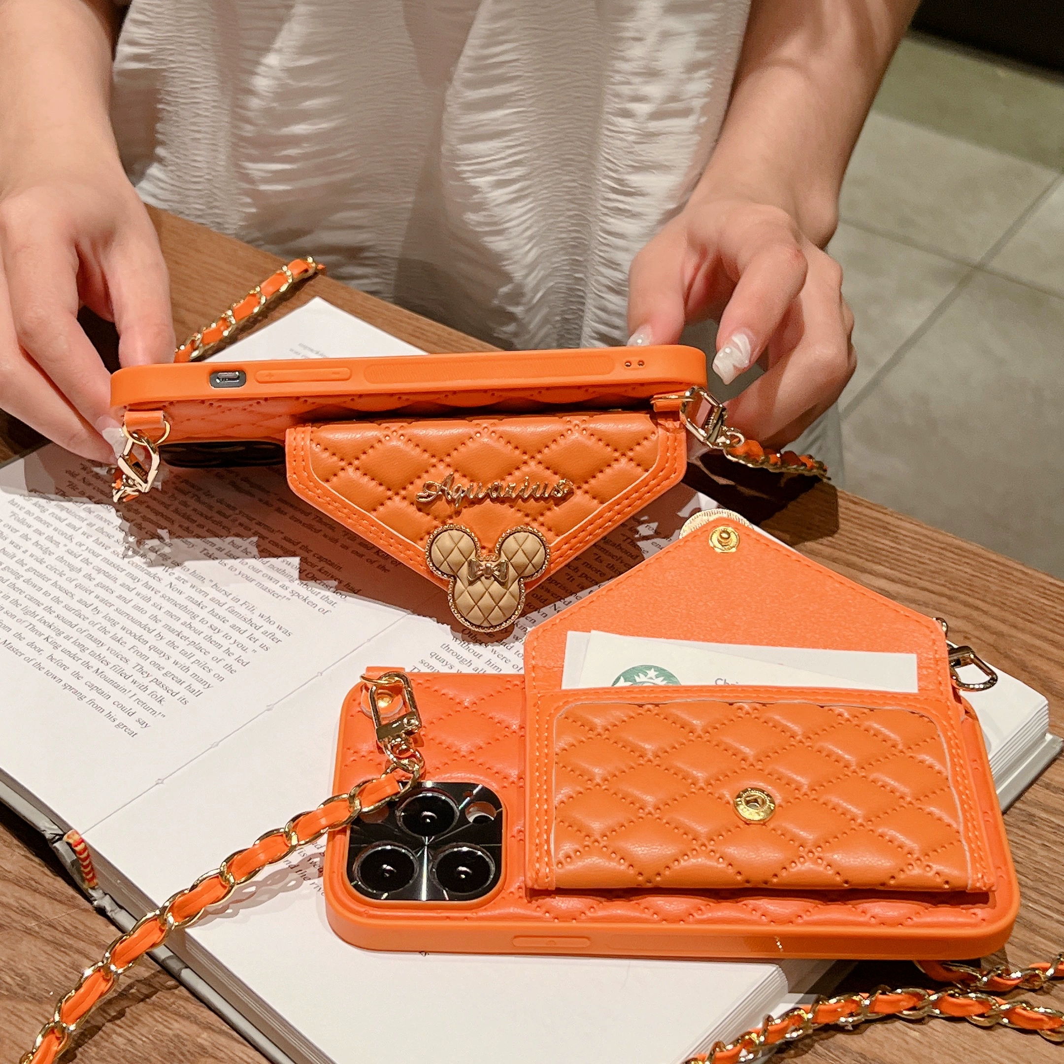 | nameOriginal | Luxurious orange coin purse Apple 13promax cross-body mobile phone case for women, suitable for Apple 12promax strap-type lanyard 11promax high-end card bag 13 leather rope full-cover edge anti-fall |