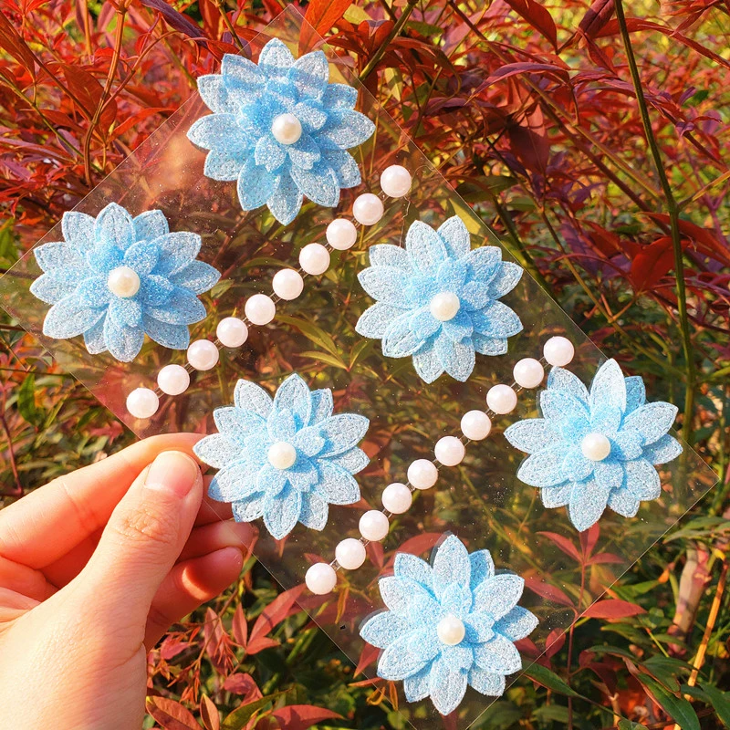 | nameOriginal | Luxurious pearl glitter flowers, pink flower cloth stickers, handmade three-dimensional stickers, growth album decorative stickers |