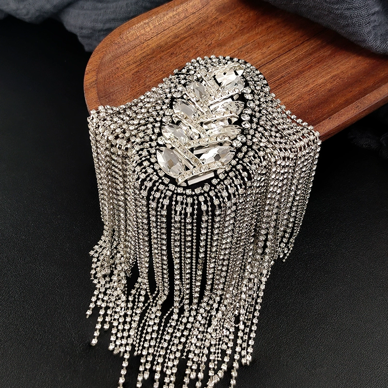 Luxurious super flash female stage performance dress with shoulder flower rhinestones