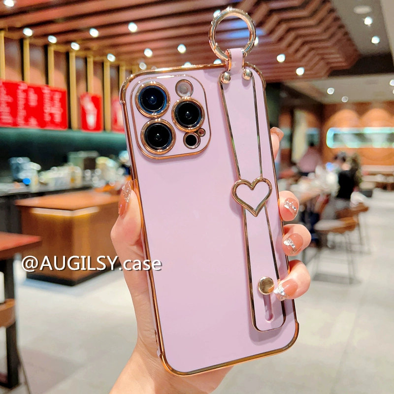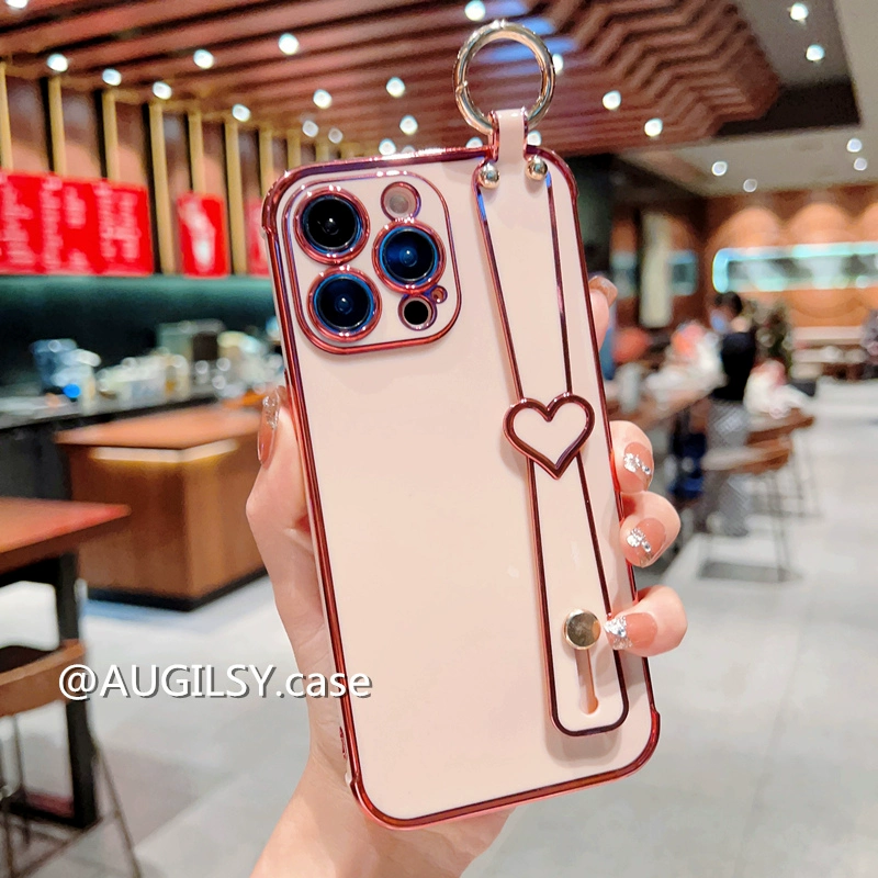 Luxury airbag love wristband Apple 13 mobile phone case suitable for iphone14pro protective cover 12 silicone Xsmax high-end 11 all-inclusive 15plus bracket for women Xr high-end 8X pink
