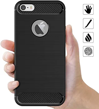 Case for Apple iPhone 5 / iPhone 5S / iPhone SE (4 inch) Soft Silicon Luxury Brushed with Texture Carbon Fiber Design Protection Cover (Black)