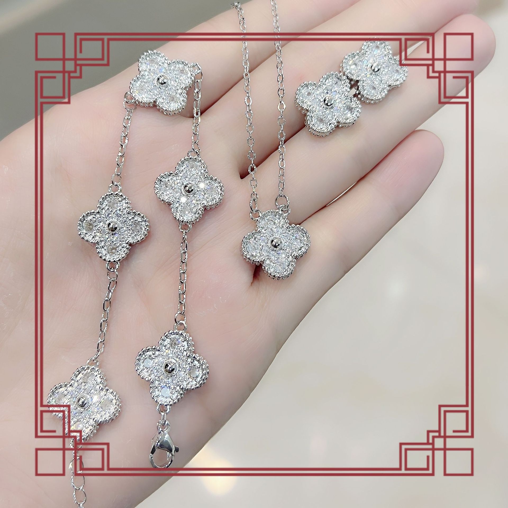 | nameOriginal | Luxury Blooming flower pendant necklace stud earrings bracelet necklace dinner elegant Super fairy four pieces flower jewelry suit |