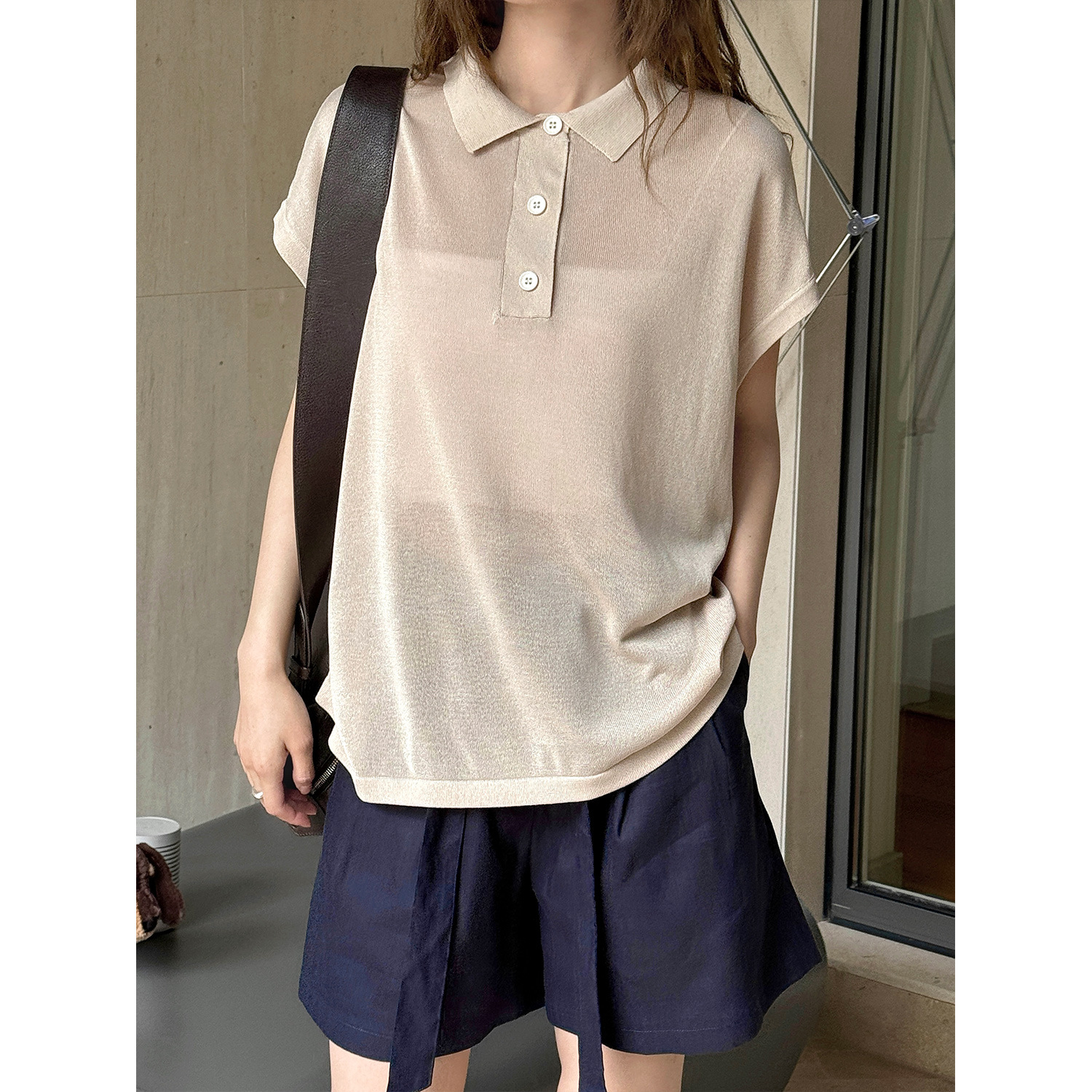 | nameOriginal | Lvu Summer New French Retro Lazy Polo Collar Sleeveless Knitted Vest Soft Waxy Comfortable Casual Top for Women |
