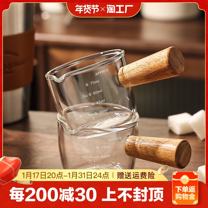 | nameOriginal | LW96 Italian concentrated coffee cup glass small Milk Cup with scale simple retro extraction measuring cup wooden handle shot Ang |