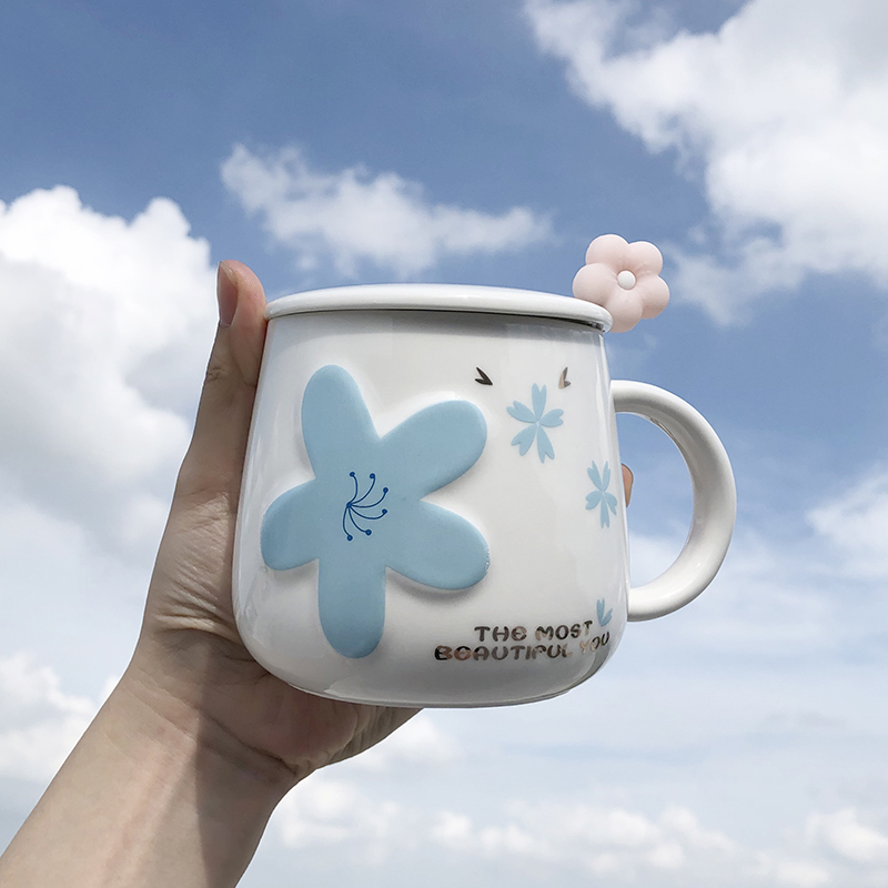| nameOriginal | LW96 Japanese-style cherry blossom high-looking ceramic mug with lid spoon home cute girl breakfast coffee cup office |