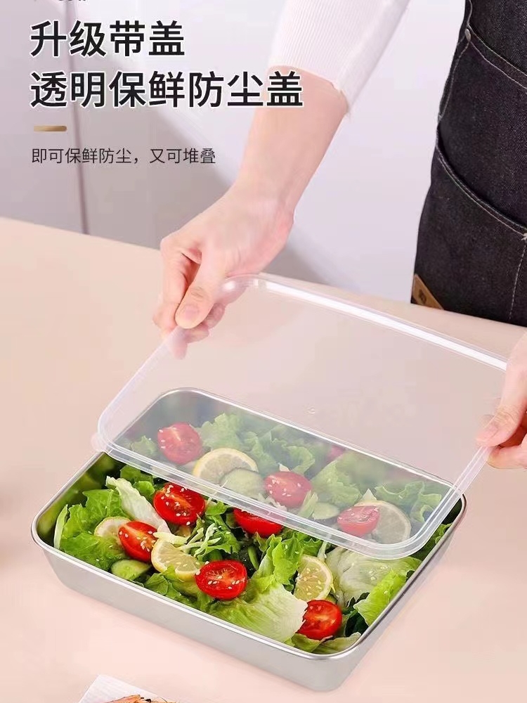 | nameOriginal | LW96304 stainless steel square plate with lid tiramisu plate crisper stall plate picnic plate rectangular flat bottom |