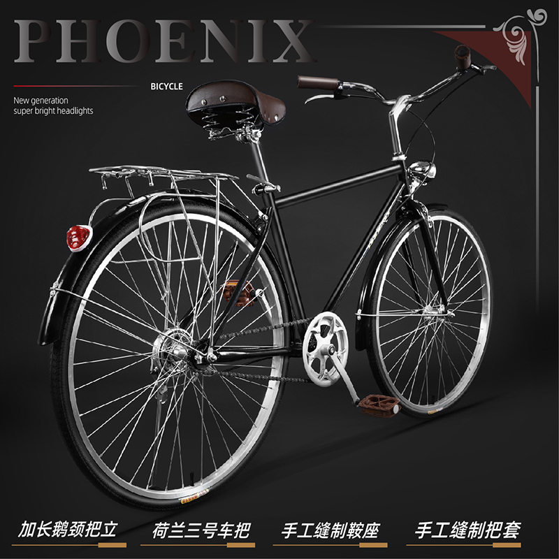 ly Bicycle Men's and Women's Adult commuter Retro 26-inch Variable Speed Old-fashioned Load 28 Large Bar Single