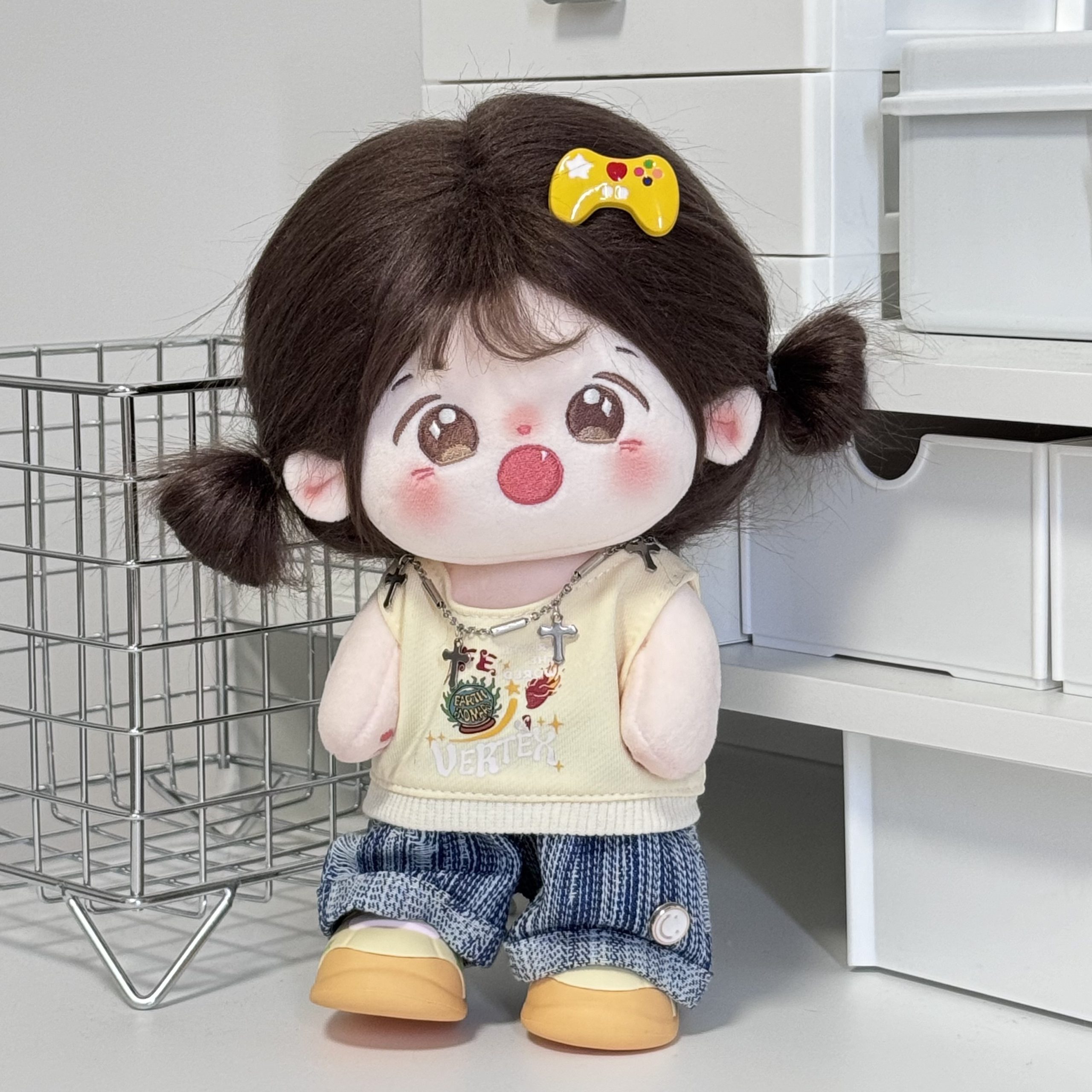 Ly in stock cotton doll coat 3 points (sleeveless shirt & Denim shorts & necklace) 20cm suit