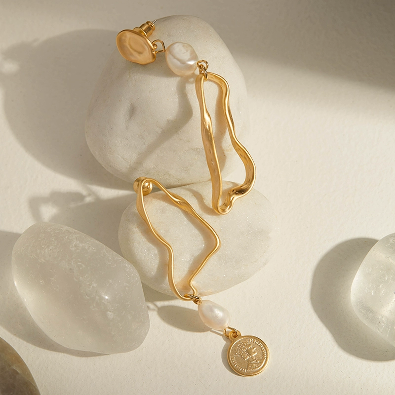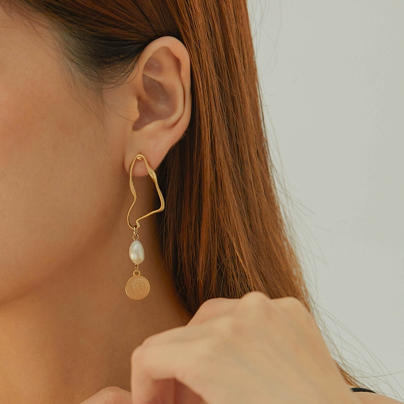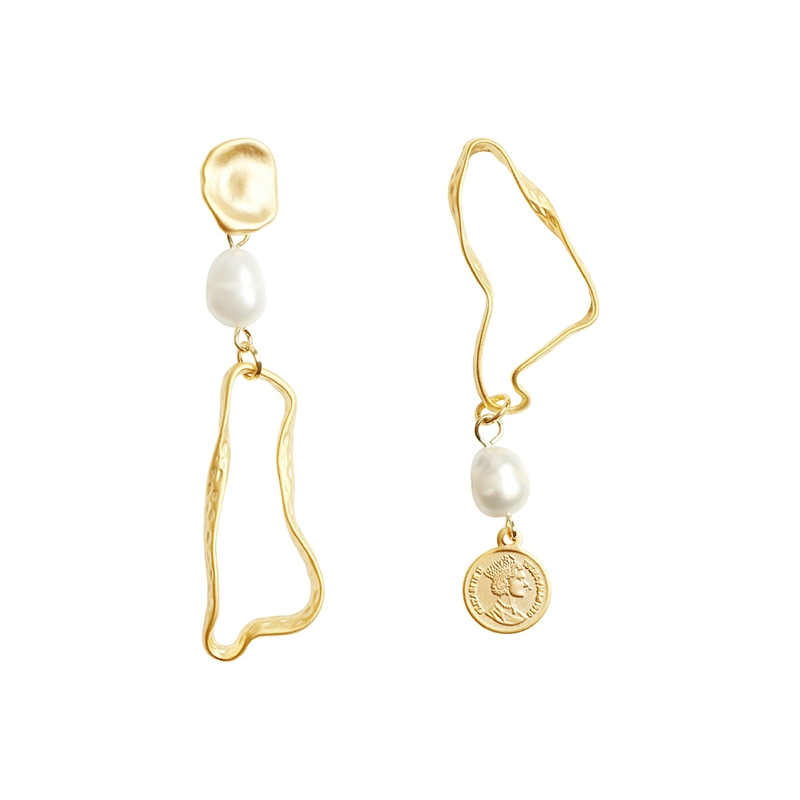 | nameOriginal | Lydow granularity retro pearl portrait asymmetrical earrings high-end exaggerated personality long earrings S925 silver |