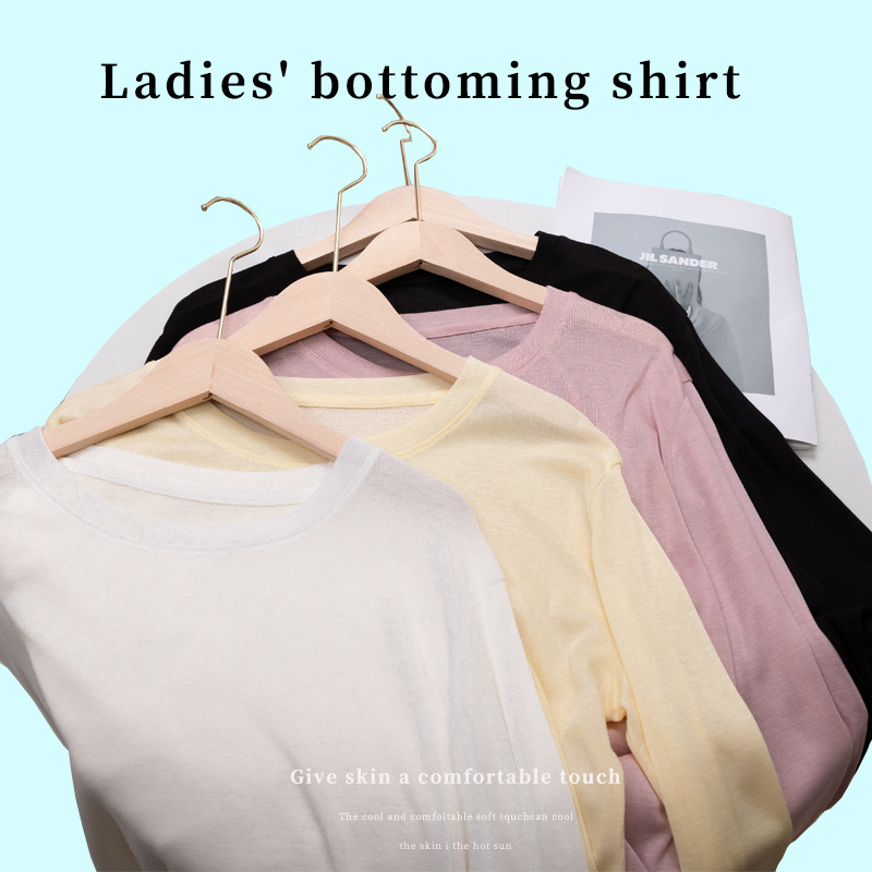 Lyocell Tencel Base Shirt Women's Round Neck Lightweight Loose Korean Style All-match Inner Sun-protection Clothing Long-sleeved Women's Mask Clothing