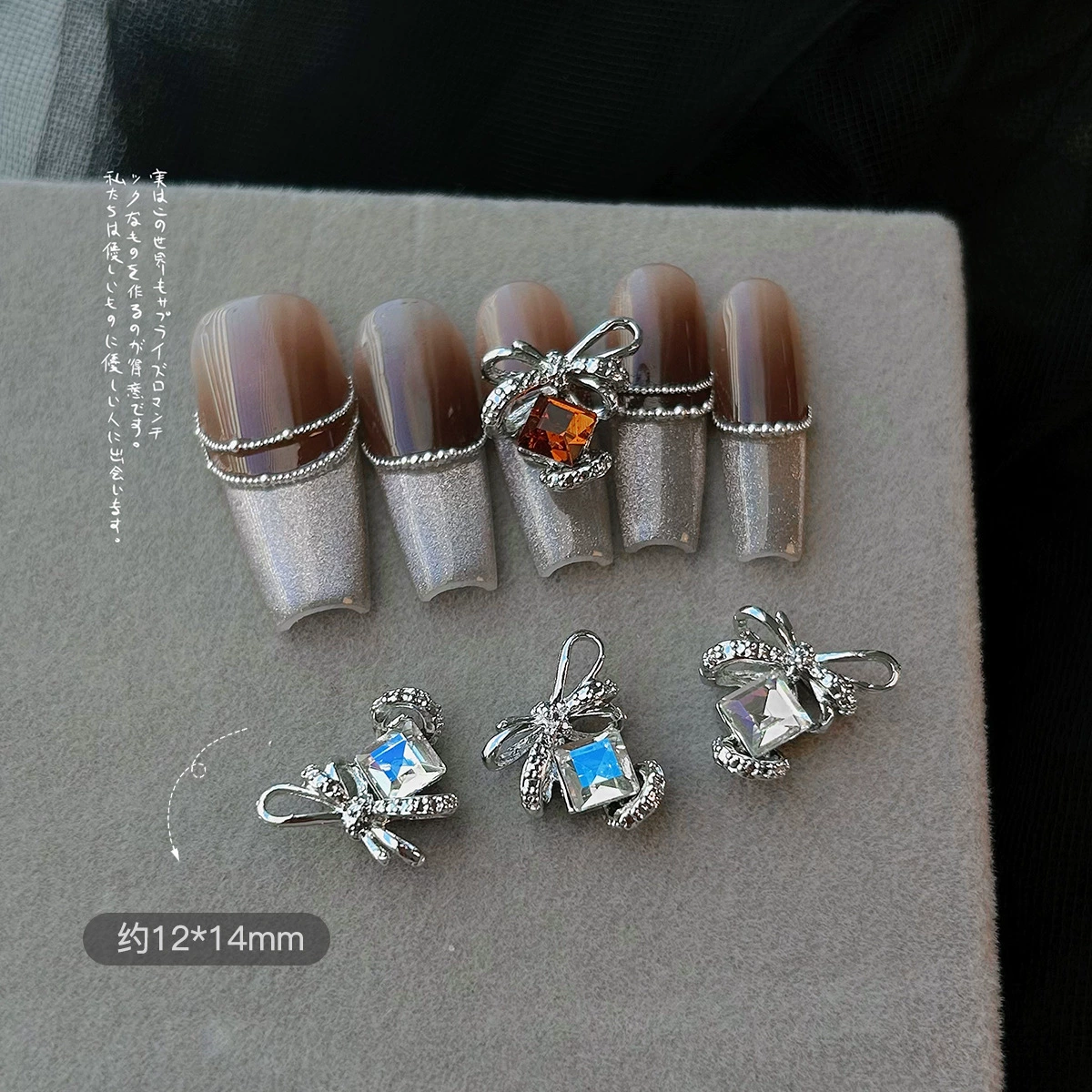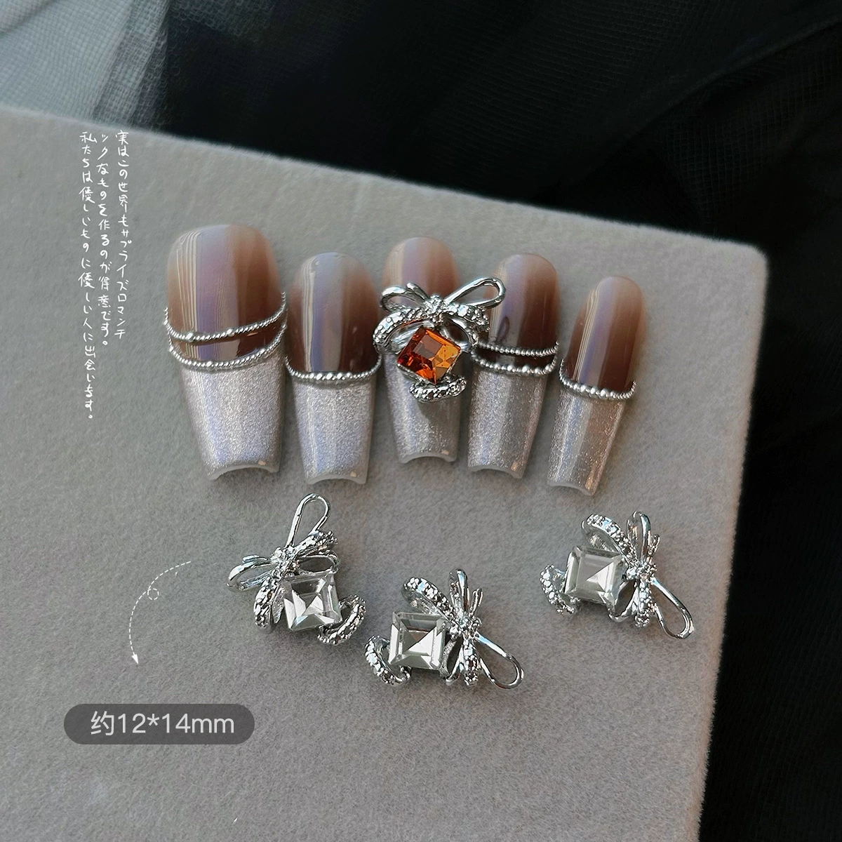 LZ same style internet celebrity square diamond butterfly combination gold three-dimensional diamond bow tie manicure diamond jewelry nail accessories
