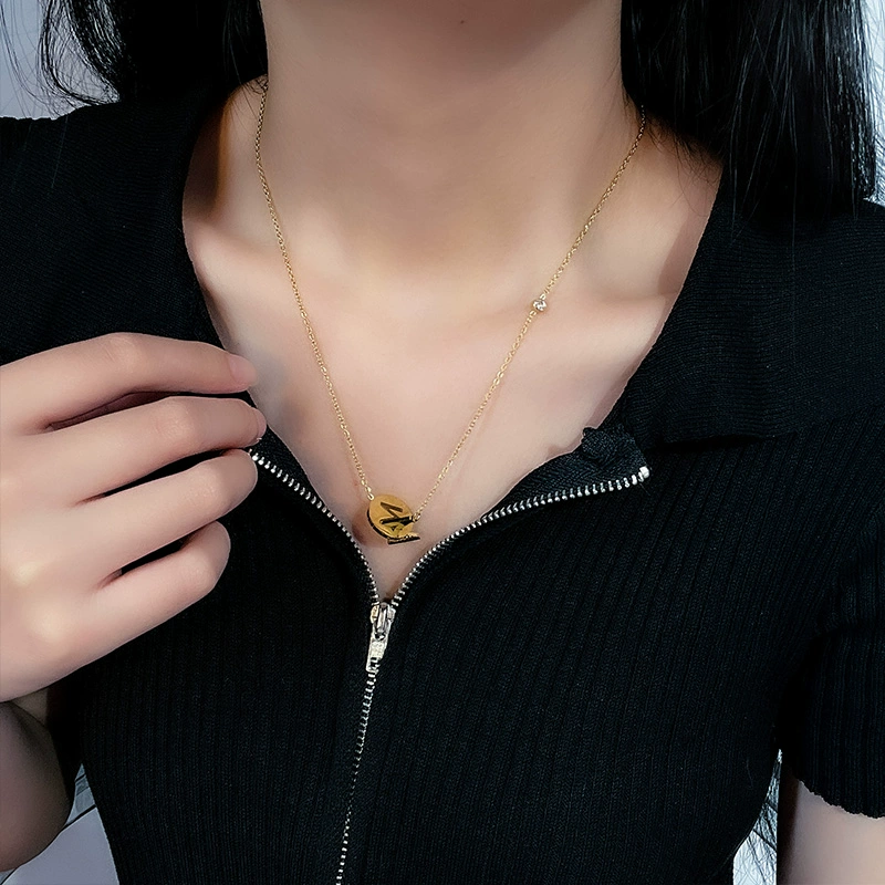 | nameOriginal | M pendant round tag titanium steel necklace does not fade Japanese and Korean light luxury gold clavicle chain adjustable length jewelry |