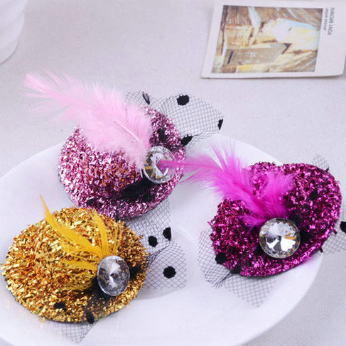 M012-7 thick ribbon feather Korean style feather bowler hat hair accessories children stage performance 5. 8cm