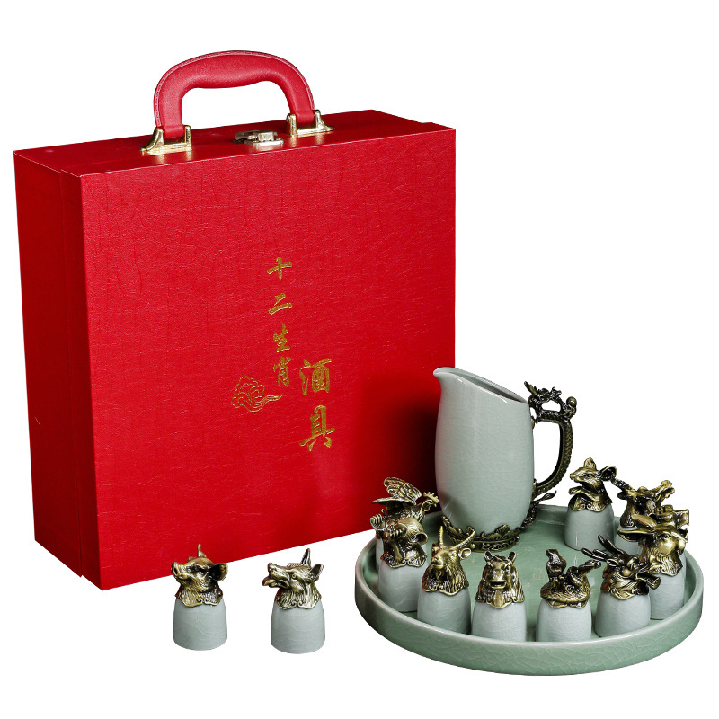 | nameOriginal | M204 ceramic white wine glass wine separator twelve Zodiac wine glass wine set gift box suit spirits Cup with plate gift |