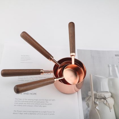 M204 rose gold stainless steel measuring spoon coffee measuring cup measuring spoon with scale gram counting spoon kitchen baking wooden handle measuring spoon