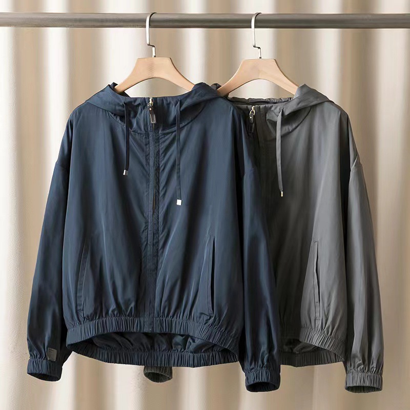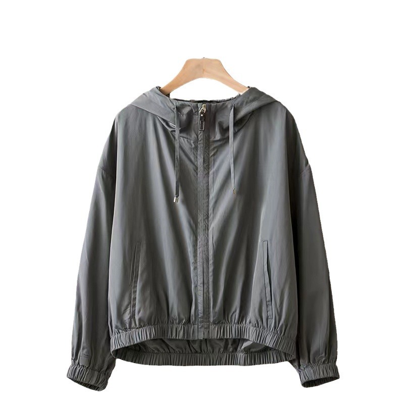 M24 spring and summer new drawstring hood zipper loose short coat New Technology fabric lazy casual all-matching