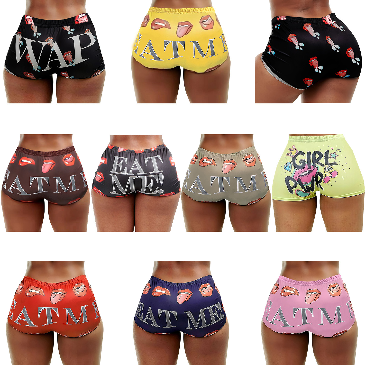 | nameOriginal | M3057 European and American Amazon Summer New Women's Tight Stretch Casual Shorts Lip Letter Printed Hot Pants |