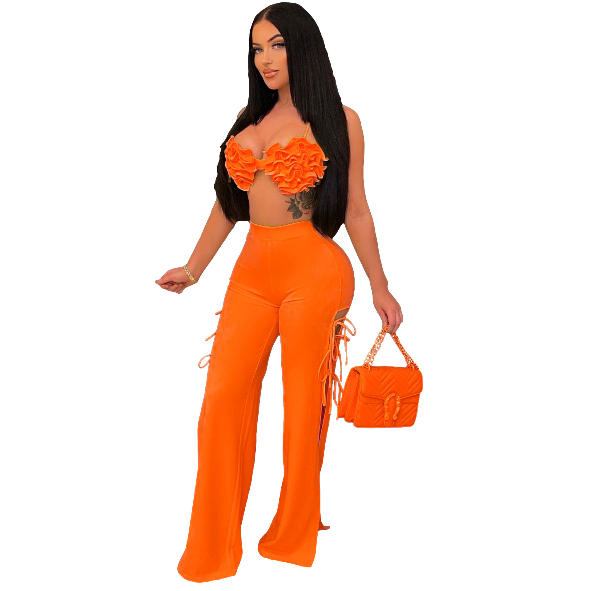| nameOriginal | M7468 European and American women's new Amazon independent station fashion sexy wrap chest strap flared pants suit |