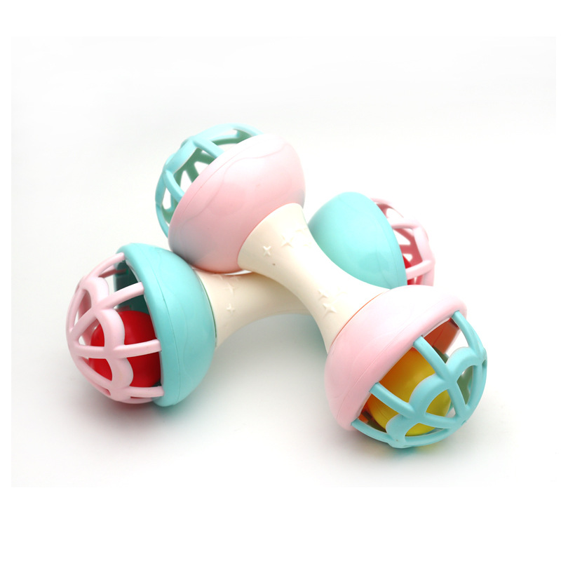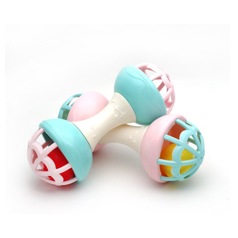 Macaron soft rubber teether infant 3-12 months double barbell educational soothing toy rattle Bell toy