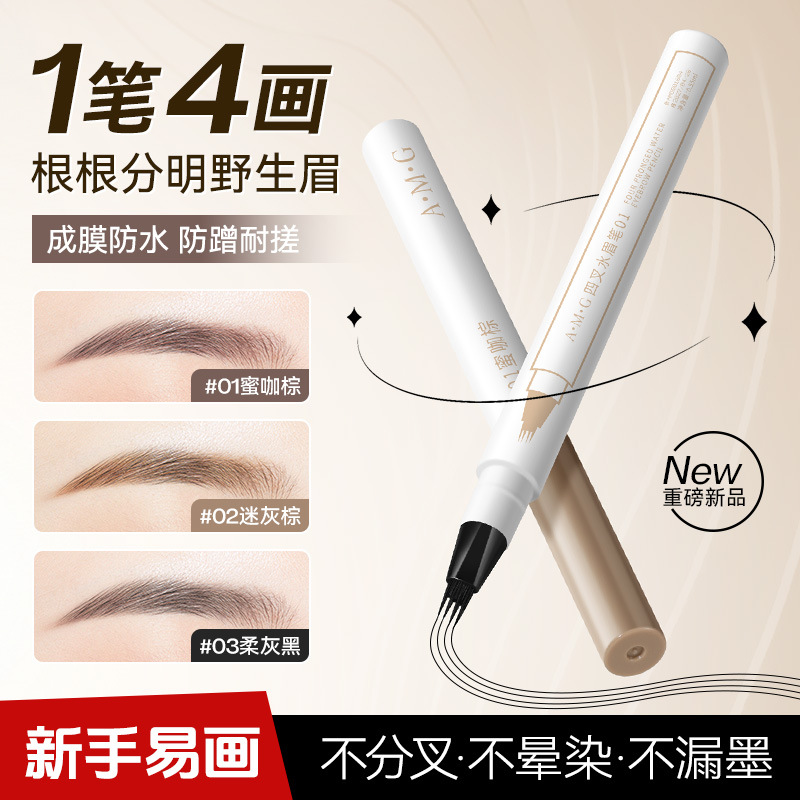 macfee natural color four-pronged water eyebrow pencil liquid waterproof and sweat-proof eyebrow drawing novice
