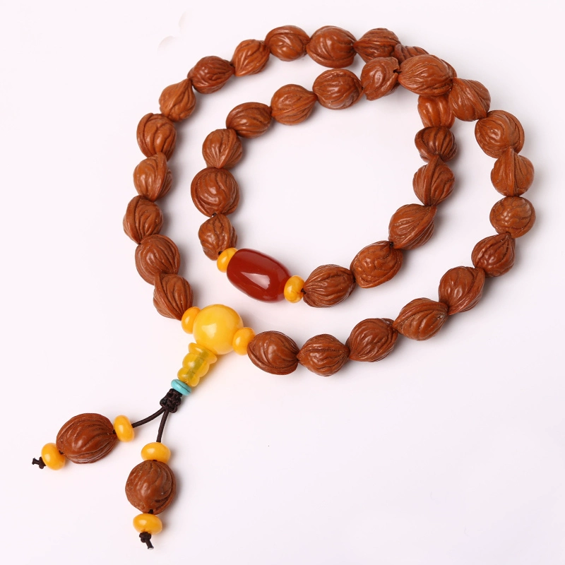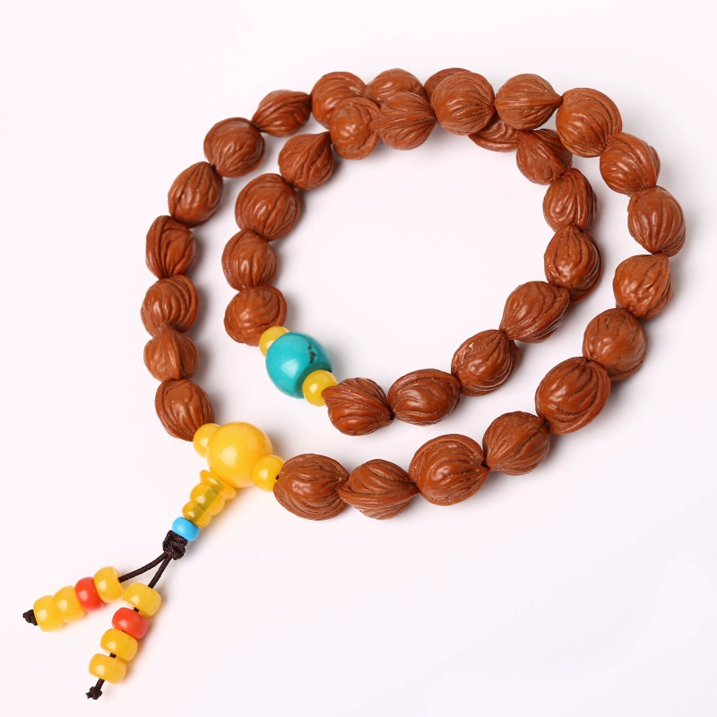 Machine Brushed Peach Hualong Pattern Buddhist Beads Rosary Bracelet