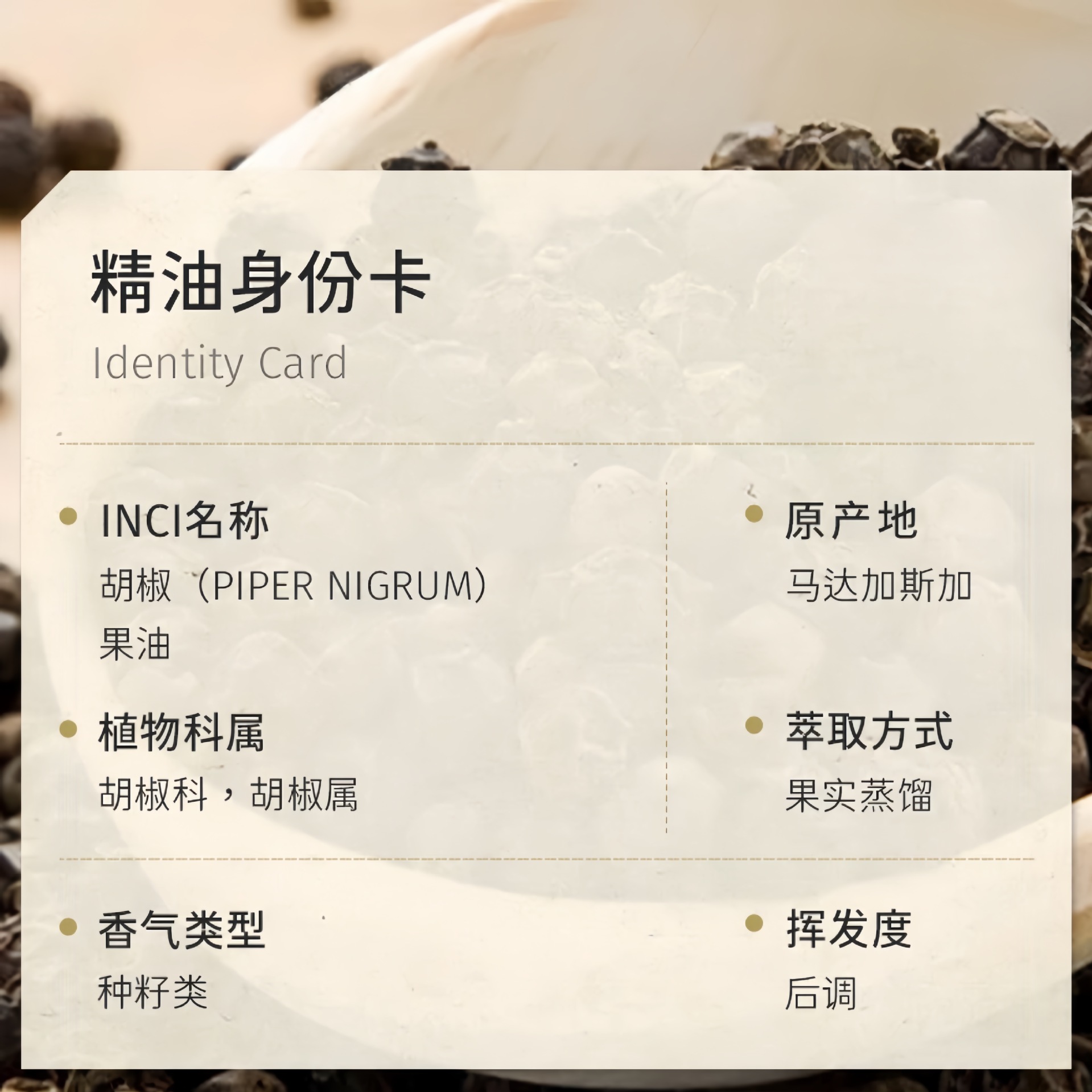 | nameOriginal | Madagascar region black pepper essential oil aromatherapy facial essence moisturizing fragrance unilateral essential oil raw materials wholesale |
