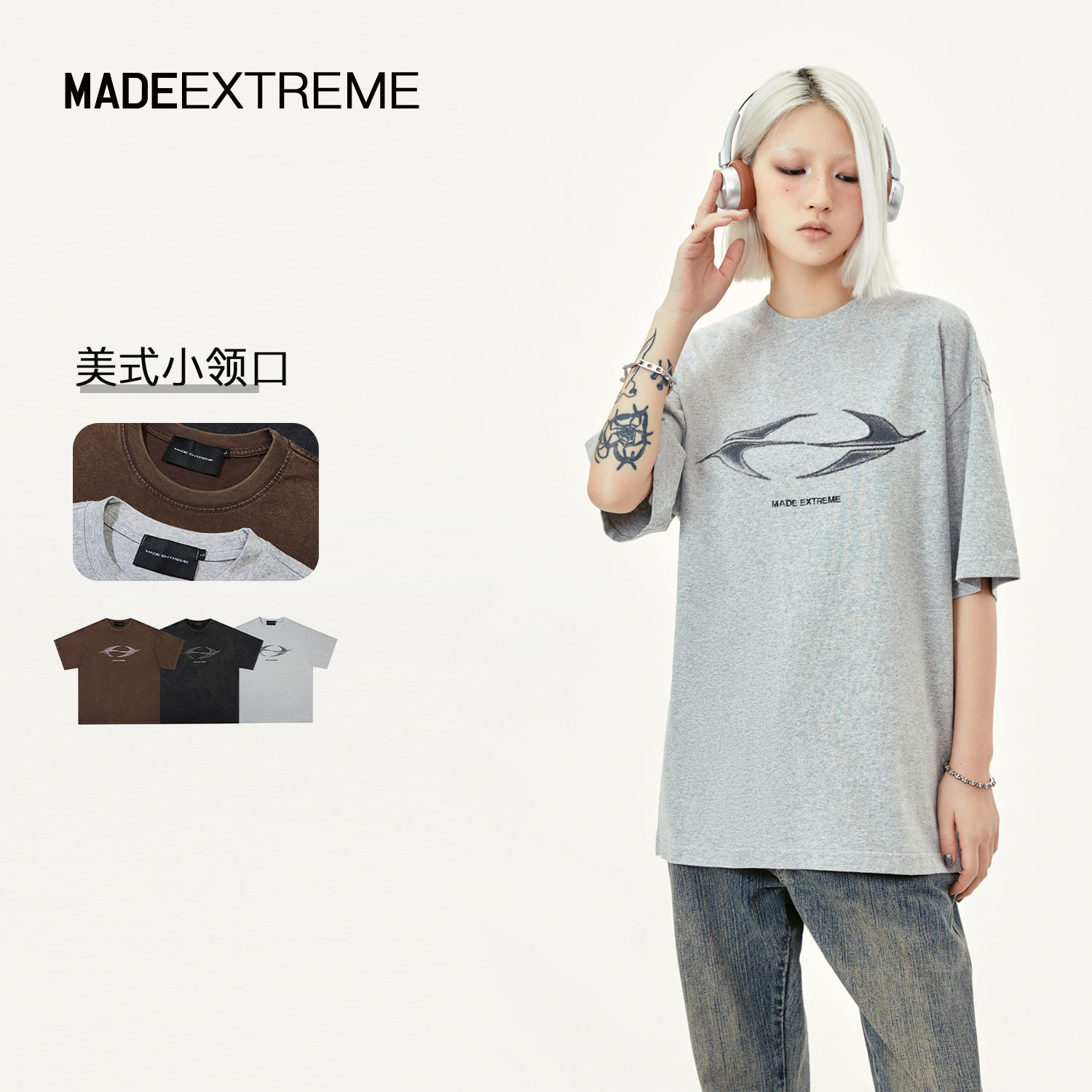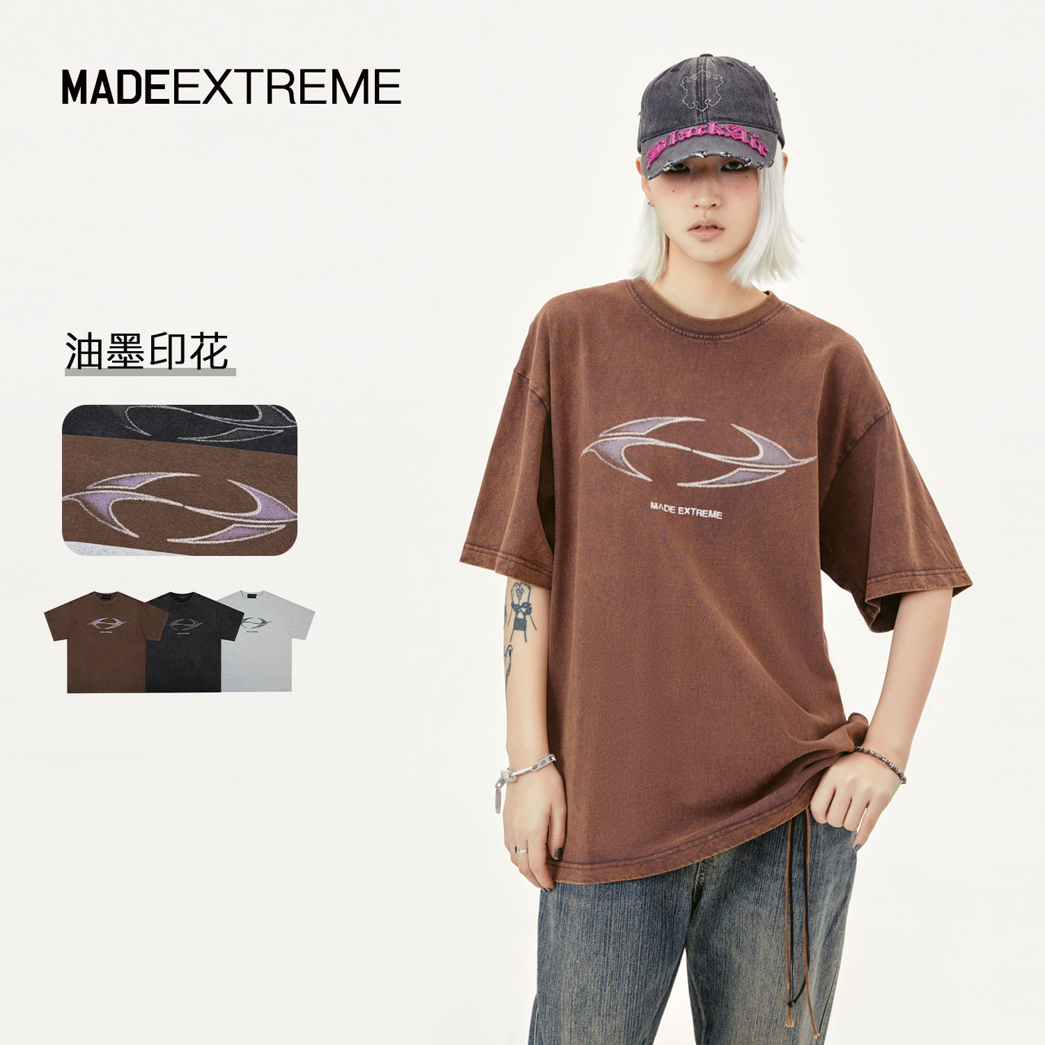 | nameOriginal | MADEEXTREME washed fried salt distressed 250g letter printing Street heavy short sleeve T-shirt bottoming men |